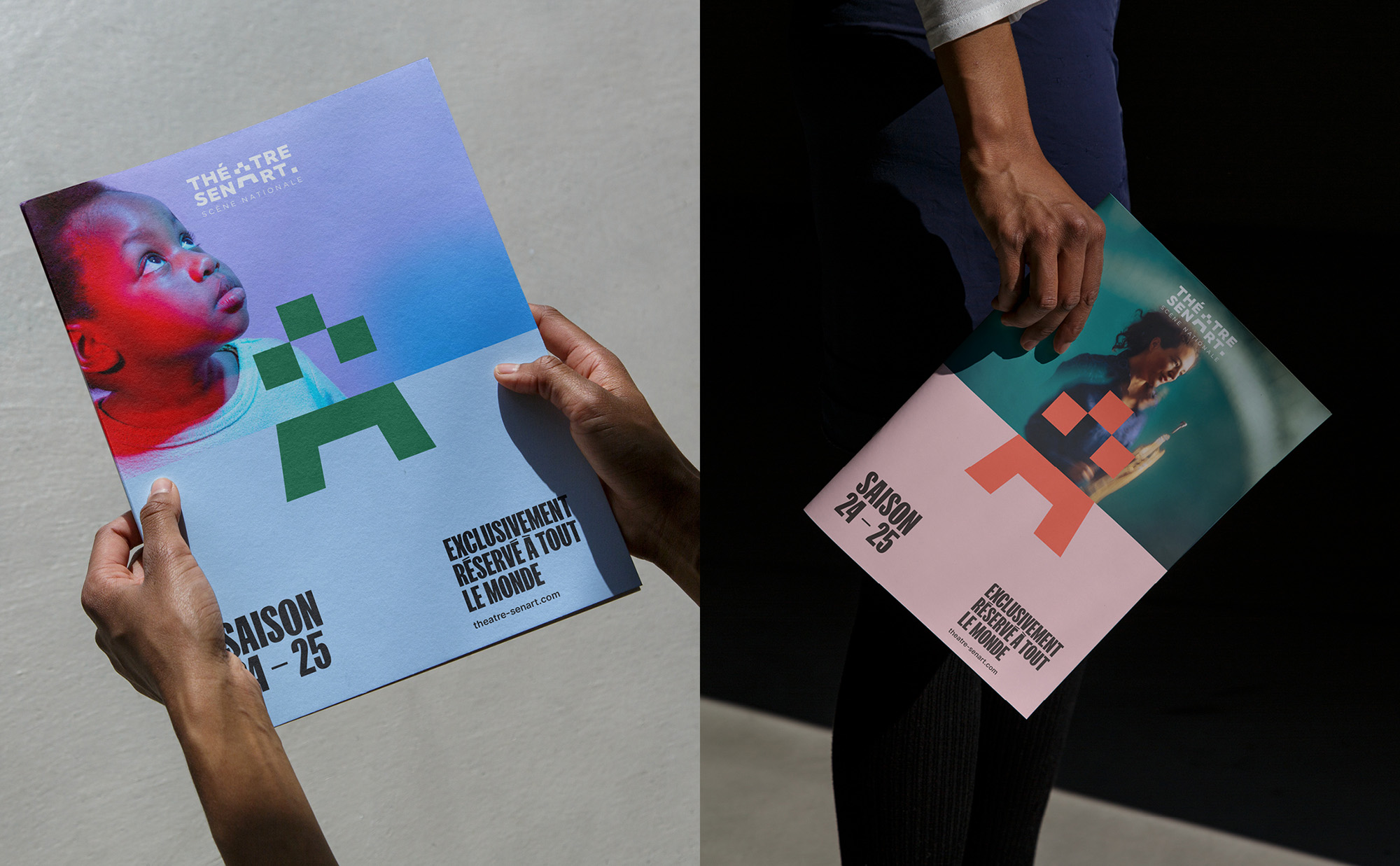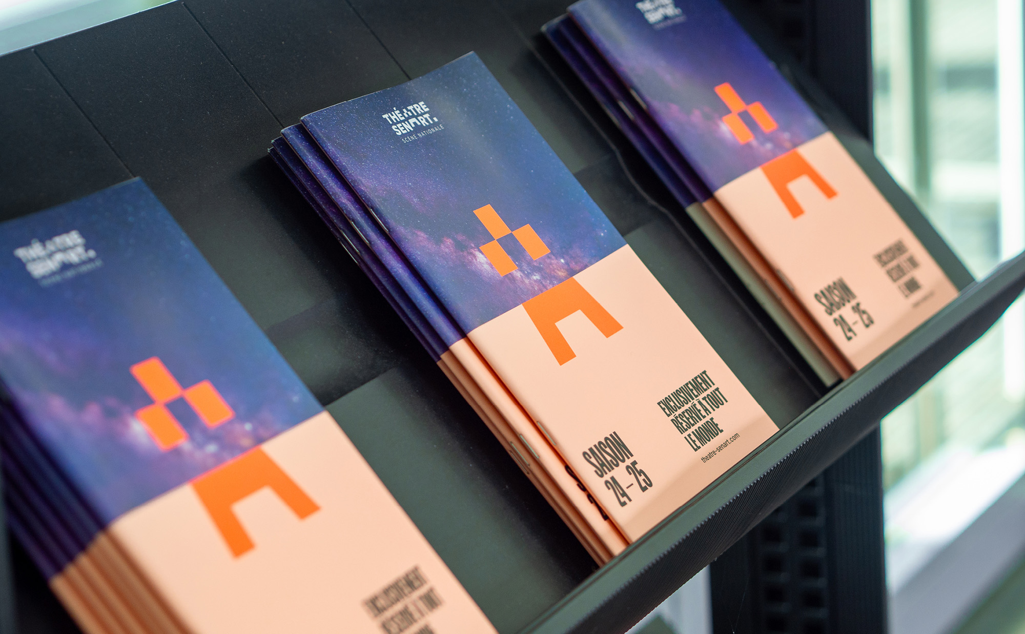 位于法國Lieusaint鎮(zhèn)的Théatre-Sénart,毗鄰Carré-Sénart購物中心,其日常通信需與眾多商業(yè)品牌的廣告競爭。這座劇院坐落于郊區(qū)與開闊田野之間,迪士尼樂園巴黎是其主要吸引點(diǎn)。為了重申并加強(qiáng)該機(jī)構(gòu)作為巴黎地區(qū)重要文化機(jī)構(gòu)的地位,我們受Chaix & Morel et Associés建筑工作室設(shè)計(jì)的非凡建筑啟發(fā),提出了一套全面的品牌工具包。