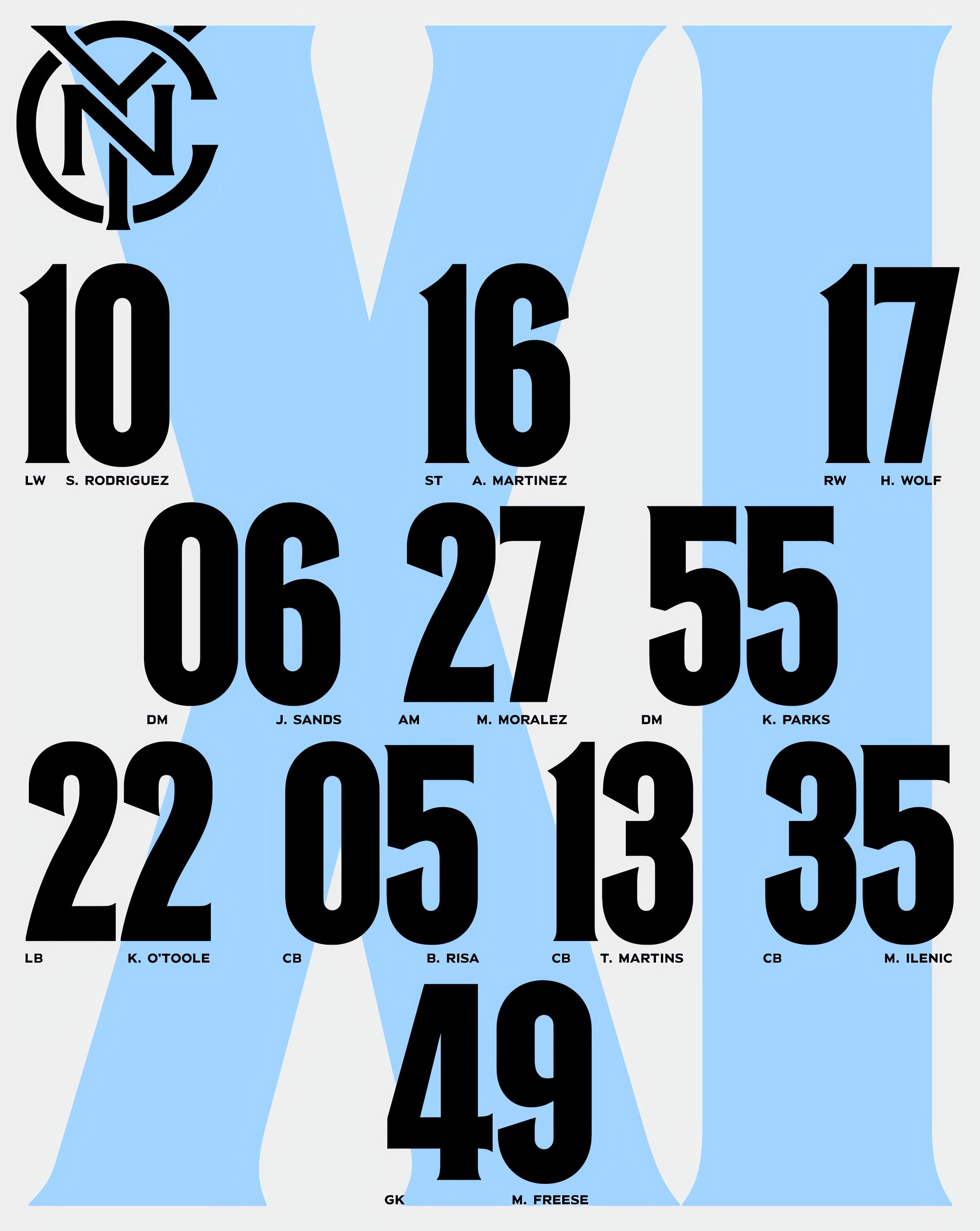 新的隊徽優(yōu)化了原有設(shè)計,中心采用“NYC”字母組合,搭配自定義的“NYCFC”字體,外環(huán)以環(huán)形文字和五個五邊形點綴,象征紐約市的五個區(qū)。新設(shè)計在保持簡潔現(xiàn)代的同時,確保了在小尺寸下的可讀性,提升了品牌的辨識度與實用性。
