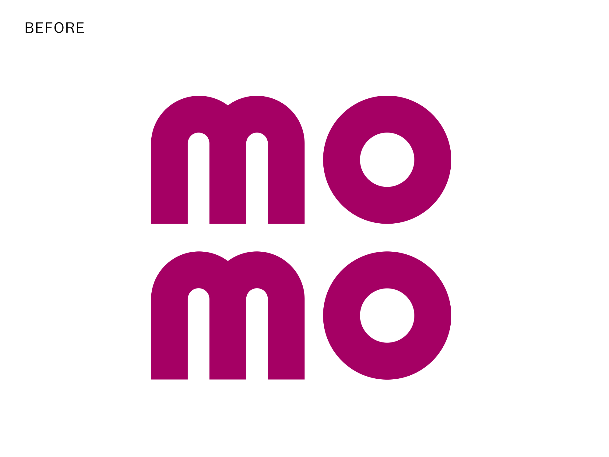 MoMo的新標(biāo)識調(diào)整雖微妙卻意義深遠(yuǎn)。設(shè)計(jì)團(tuán)隊(duì)優(yōu)化了“o”字母的overshoot(字體超出基線的設(shè)計(jì)細(xì)節(jié)),并平衡了“m”字母的肩部比例。此外,新標(biāo)識去除了原有的外框和全稱“Mobile Money”,展現(xiàn)出品牌對自己知名度的自信。這一變化類似于“Federal Express”更名為“FedEx”的經(jīng)典案例。