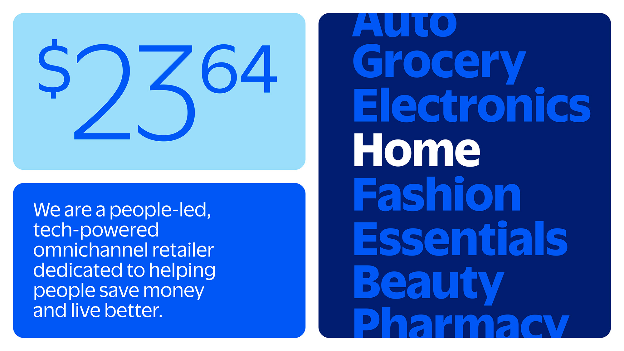 除了Logo和色彩方案的更新外,沃爾瑪?shù)男耉I設(shè)計還涵蓋了品牌語調(diào)、插畫、攝影等多個方面。全新設(shè)計的品牌語調(diào)更加貼近大眾,展現(xiàn)出沃爾瑪對數(shù)百萬顧客的親切感和包容性。無論是線上平臺還是線下門店,沃爾瑪都將以全新的面貌迎接每一位顧客。