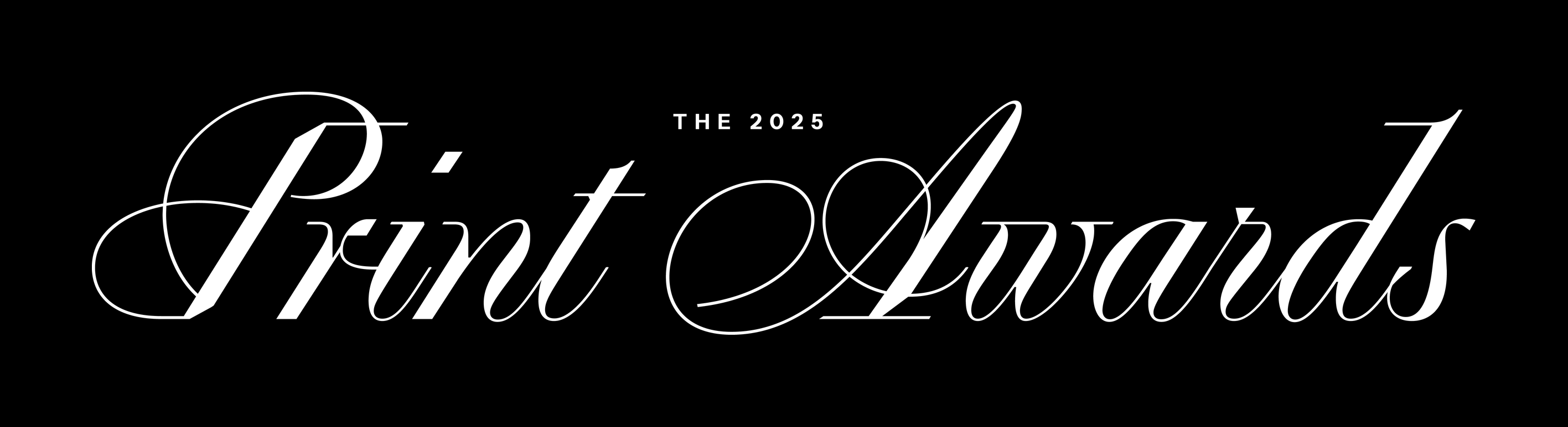 在PRINT設(shè)計獎的視覺形象上,The Collected Works進行了大膽的創(chuàng)新。相較于前兩屆使用出版物主要logo(粗體無襯線字體的“PRINT”),2025年版完全摒棄了這一傳統(tǒng),轉(zhuǎn)而采用了一種名為PP Playground的時尚、犀利且充滿趣味的手寫體。這種字體的華麗風(fēng)格與身份識別中的其他元素相得益彰,如一些超現(xiàn)實的巖石形態(tài),它們被設(shè)計成生長出草地、花朵、藤蔓和其他植物,營造出一種夢幻般的視覺效果。
