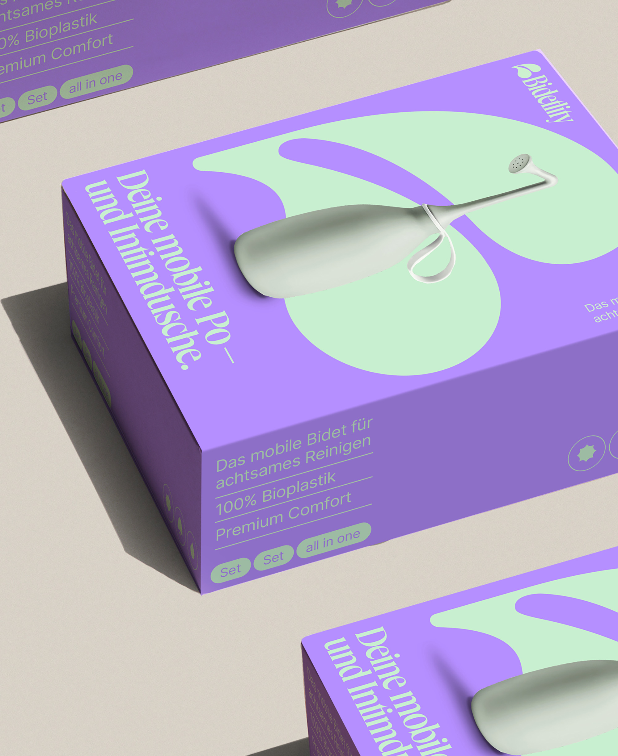 在健康意識與環(huán)保理念并行的消費(fèi)趨勢下,衛(wèi)浴行業(yè)正經(jīng)歷從功能性向體驗(yàn)感的轉(zhuǎn)型。2021年創(chuàng)立于柏林的Bidetlity敏銳捕捉到這一需求,以“重新定義親密衛(wèi)生習(xí)慣”為核心使命,推出坐浴盆、智能馬桶凳等創(chuàng)新產(chǎn)品。面對傳統(tǒng)衛(wèi)浴品牌保守的形象定位,Bidetlity選擇通過視覺識別設(shè)計(jì)(VI設(shè)計(jì))突破行業(yè)桎梏,將私密護(hù)理話題轉(zhuǎn)化為趣味與專業(yè)并存的品牌敘事。