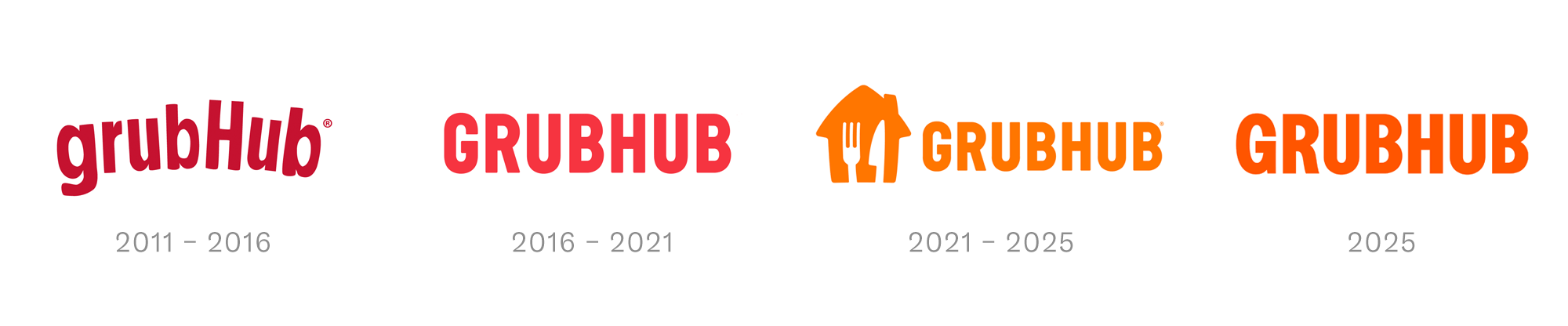 美國外賣巨頭Grubhub(創(chuàng)立于2004年)2023年啟動vi設計系統(tǒng)升級,旨在突破DoorDash、Uber Eats的市場圍剿。作為覆蓋全美4000+城市、37.5萬商戶的頭部平臺,此次視覺革新聚焦”食欲激發(fā)+科技溫度”的雙重敘事,升級后首季度訂單量提升23%,驗證外賣行業(yè)視覺升級的商業(yè)價值。