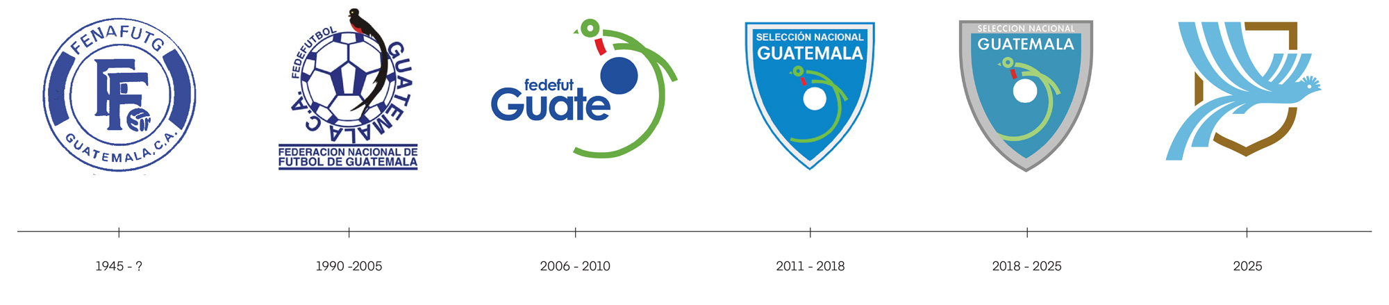 過(guò)去,F(xiàn)edeFut Guate與國(guó)家隊(duì)使用著兩個(gè)不同但相似的舊logo,均抽象地描繪了格查爾鳥(niǎo),但過(guò)于復(fù)雜且難以適應(yīng)各種應(yīng)用場(chǎng)景。新logo則更加寫實(shí),展現(xiàn)了格查爾鳥(niǎo)在空中翱翔的英姿,長(zhǎng)尾和羽冠栩栩如生。鳥(niǎo)翼大小的夸張變化增強(qiáng)了深度和動(dòng)感,使logo從靜態(tài)轉(zhuǎn)變?yōu)閯?dòng)態(tài)。新logo成為FedeFut Guate與國(guó)家隊(duì)的統(tǒng)一標(biāo)識(shí),僅通過(guò)下方的“FFG”字樣進(jìn)行區(qū)分,簡(jiǎn)潔而明了。