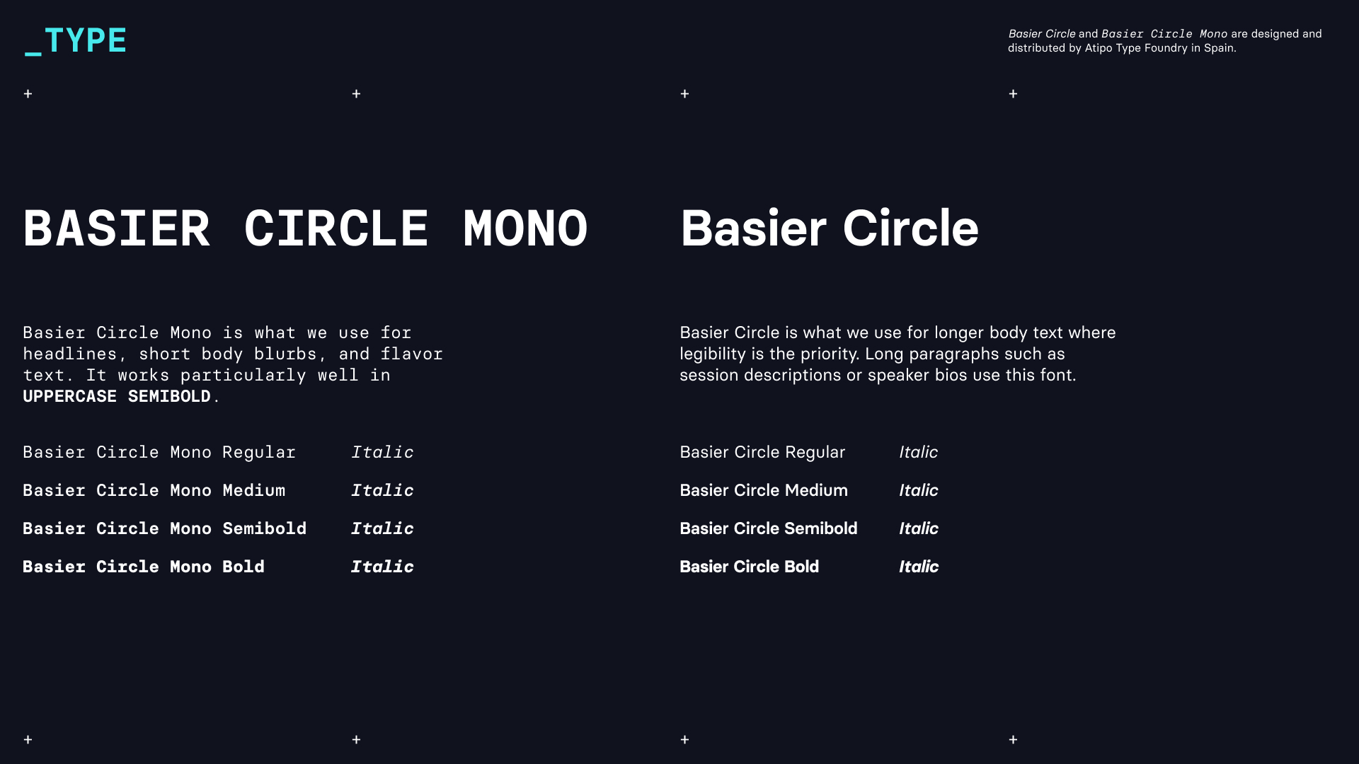 本次視覺(jué)識(shí)別設(shè)計(jì)的核心,在于通過(guò)簡(jiǎn)單的形狀融合,創(chuàng)造出一種“破霧而出”的視覺(jué)效果,象征人工智能正逐漸走入主流視野。設(shè)計(jì)團(tuán)隊(duì)巧妙地運(yùn)用了高對(duì)比度的色彩組合,如鮮艷的霓虹色與黑白相間,以吸引觀者的注意力。同時(shí),設(shè)計(jì)還采用了無(wú)欄柵的網(wǎng)格布局,以及Basier Circle Mono和Basier Circle兩款字體,為峰會(huì)身份增添了獨(dú)特的代碼靈感元素。