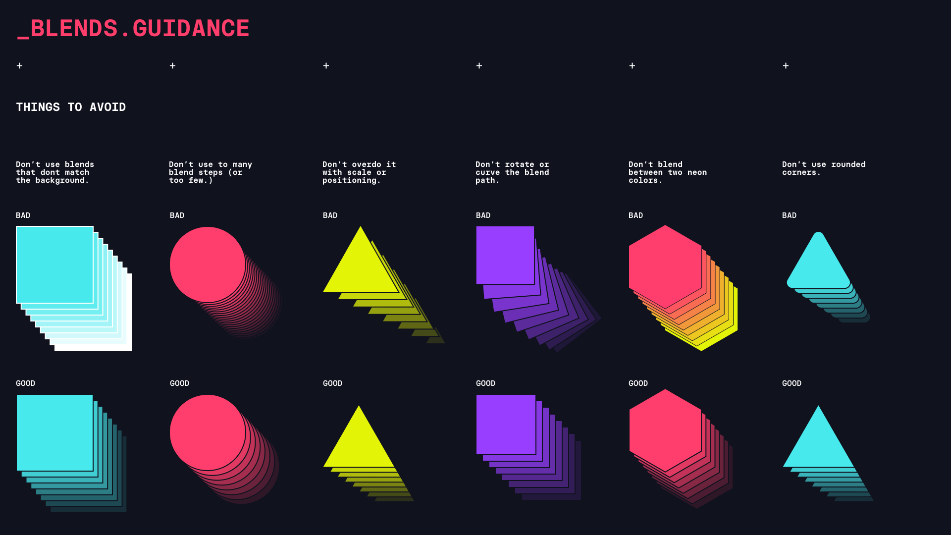 在保持Databricks品牌原有簡(jiǎn)潔logo的基礎(chǔ)上,設(shè)計(jì)團(tuán)隊(duì)圍繞基本幾何形狀展開(kāi)創(chuàng)作,運(yùn)用了Adobe Illustrator中的形狀融合技巧,打造出既清新又充滿活力的視覺(jué)形象。在黑色背景上,明亮的霓虹色與深色調(diào)相互映襯,形成了一種愉悅的視覺(jué)效果。而當(dāng)色彩層次發(fā)生變化時(shí),無(wú)論是彩色還是白色背景,形狀與線條色彩都能完美融入,展現(xiàn)出極高的適應(yīng)性。