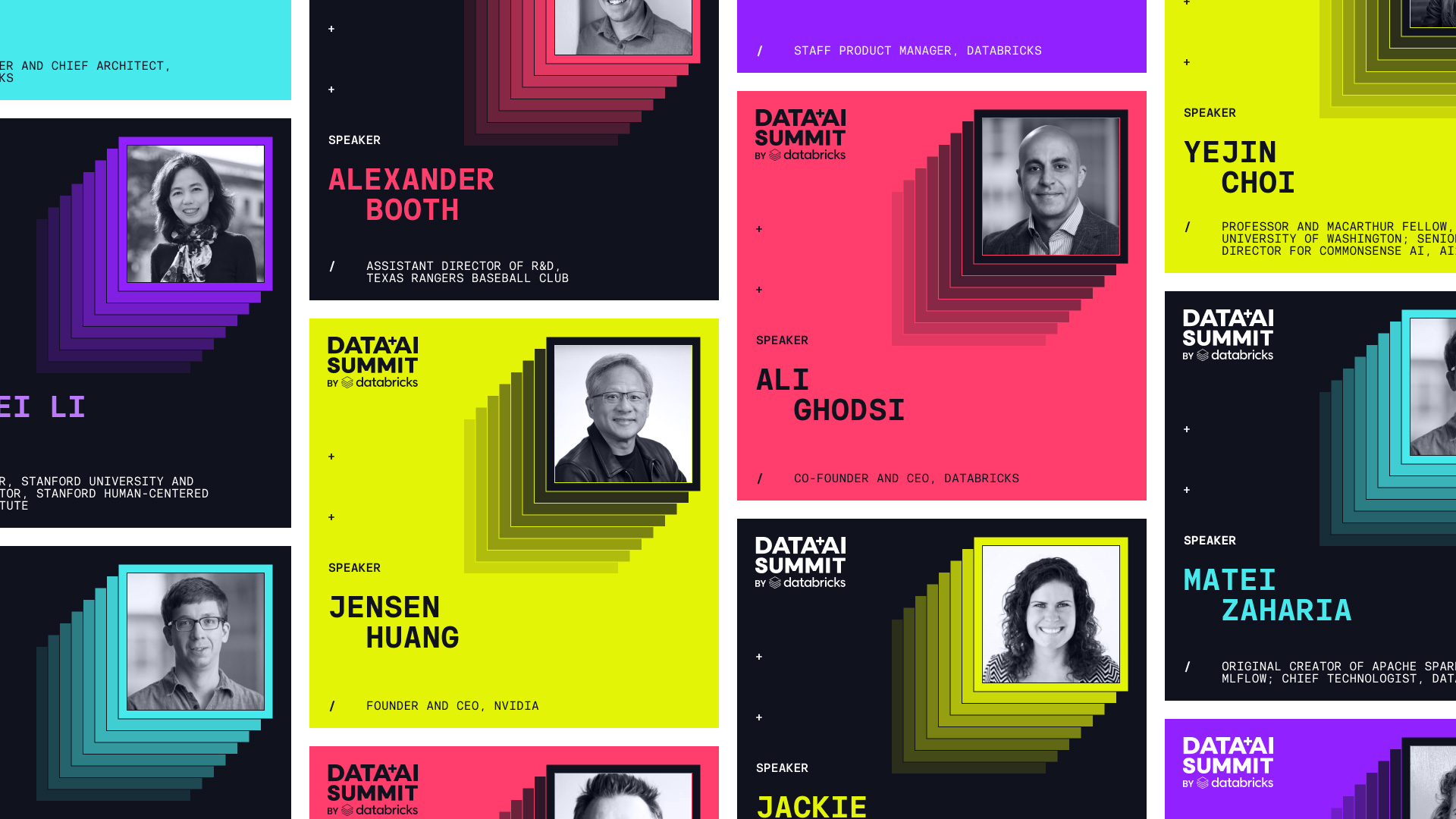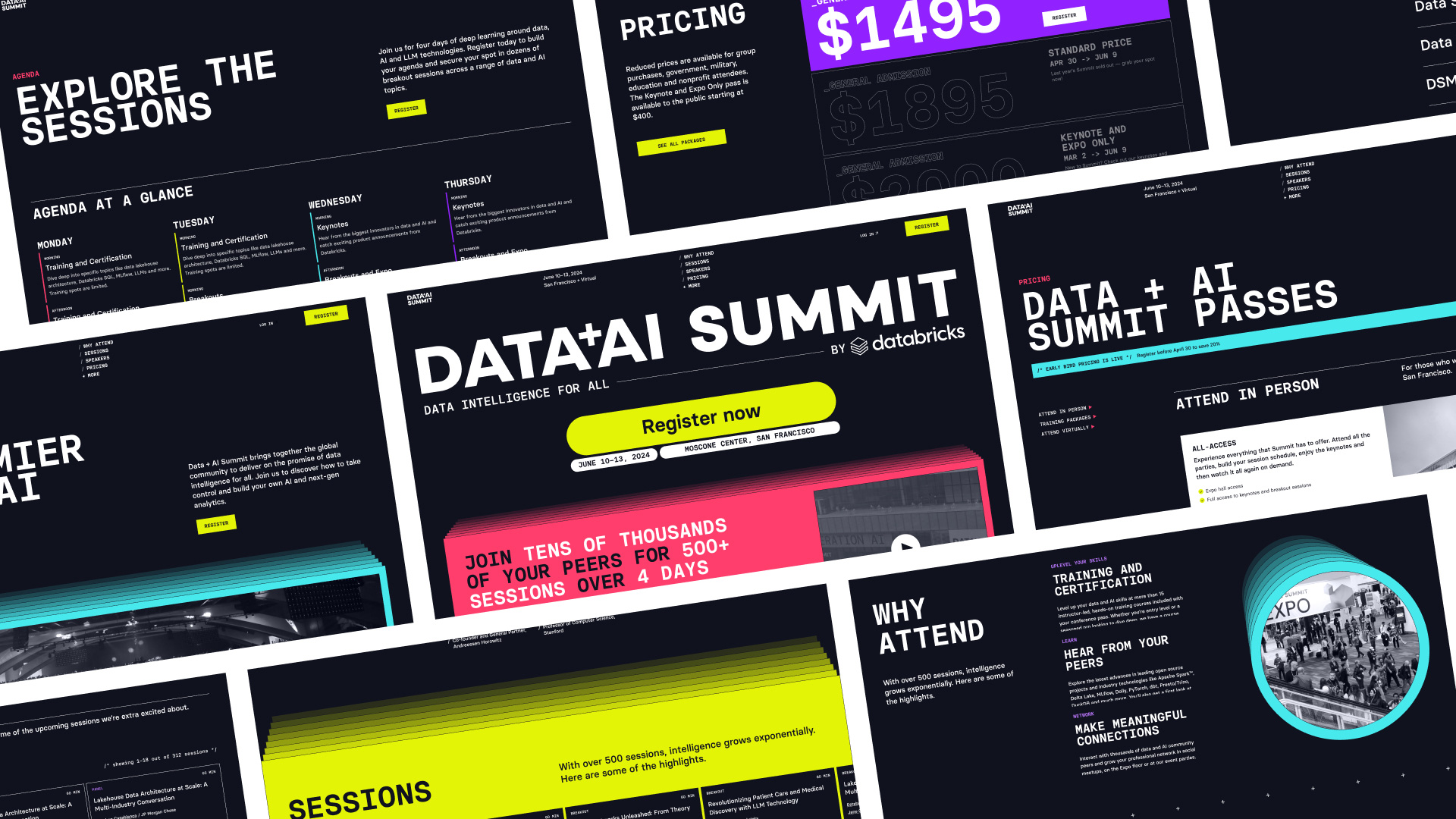 Databricks Data + AI Summit的視覺(jué)識(shí)別設(shè)計(jì),以其簡(jiǎn)潔、動(dòng)態(tài)且富有感染力的風(fēng)格,成功吸引了業(yè)界的廣泛關(guān)注。通過(guò)巧妙的形狀融合、高對(duì)比度色彩組合以及獨(dú)特的字體選擇,設(shè)計(jì)團(tuán)隊(duì)成功傳達(dá)出了峰會(huì)的核心理念,并為參會(huì)者帶來(lái)了一場(chǎng)視覺(jué)盛宴。這次品牌設(shè)計(jì)實(shí)踐不僅展示了Databricks對(duì)品牌形象的深刻理解,也為未來(lái)的數(shù)據(jù)科學(xué)與人工智能盛會(huì)樹(shù)立了新的標(biāo)桿。