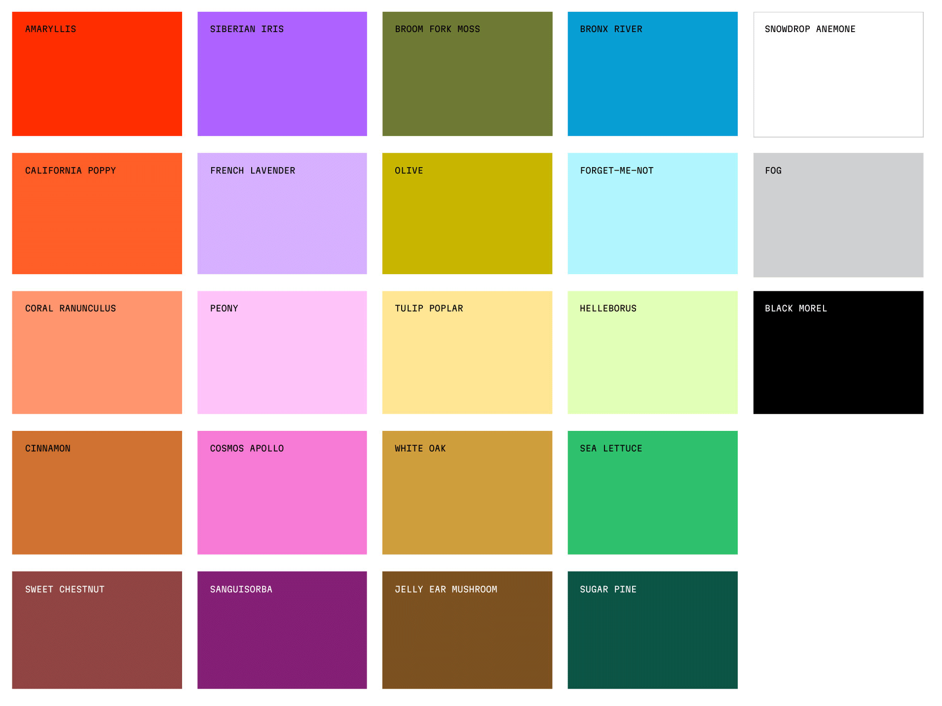 新的品牌vi設(shè)計(jì)和logo設(shè)計(jì)深受自然啟發(fā)。定制字體參考了自然形態(tài),傳達(dá)出組織的深遠(yuǎn)影響和自信。品牌聲音則捕捉了紐約植物園對植物的熱愛和專業(yè)知識,同時(shí)以紐約人特有的熱情直接邀請人們加入。色彩調(diào)色板靈感來自紐約植物園的景觀,從樹木到真菌,再到布朗克斯河,旨在全年以無盡、意外的方式組合使用。