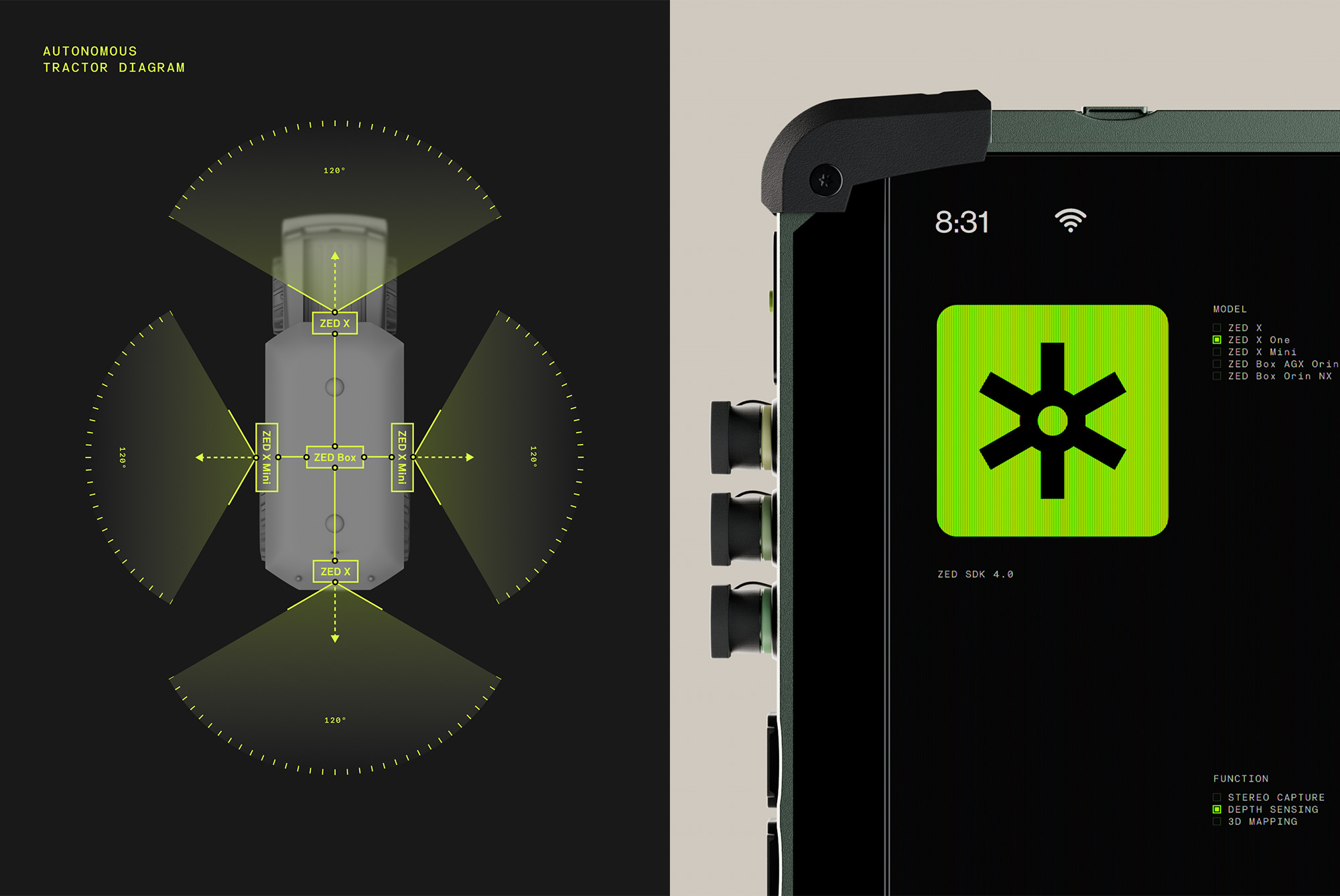 “精準(zhǔn)感知”這一主題貫穿于Stereolabs的所有工作中,并深深植根于設(shè)計(jì)語(yǔ)言中。視覺設(shè)計(jì)的簡(jiǎn)潔直接,以技術(shù)網(wǎng)格層為支撐,強(qiáng)調(diào)了準(zhǔn)確性、可靠性和對(duì)細(xì)節(jié)的關(guān)注。一個(gè)暴露的交叉網(wǎng)格框架可以作為品牌應(yīng)用中的微妙圖形元素,同時(shí)也是軟件可視化構(gòu)建的底層數(shù)字環(huán)境。