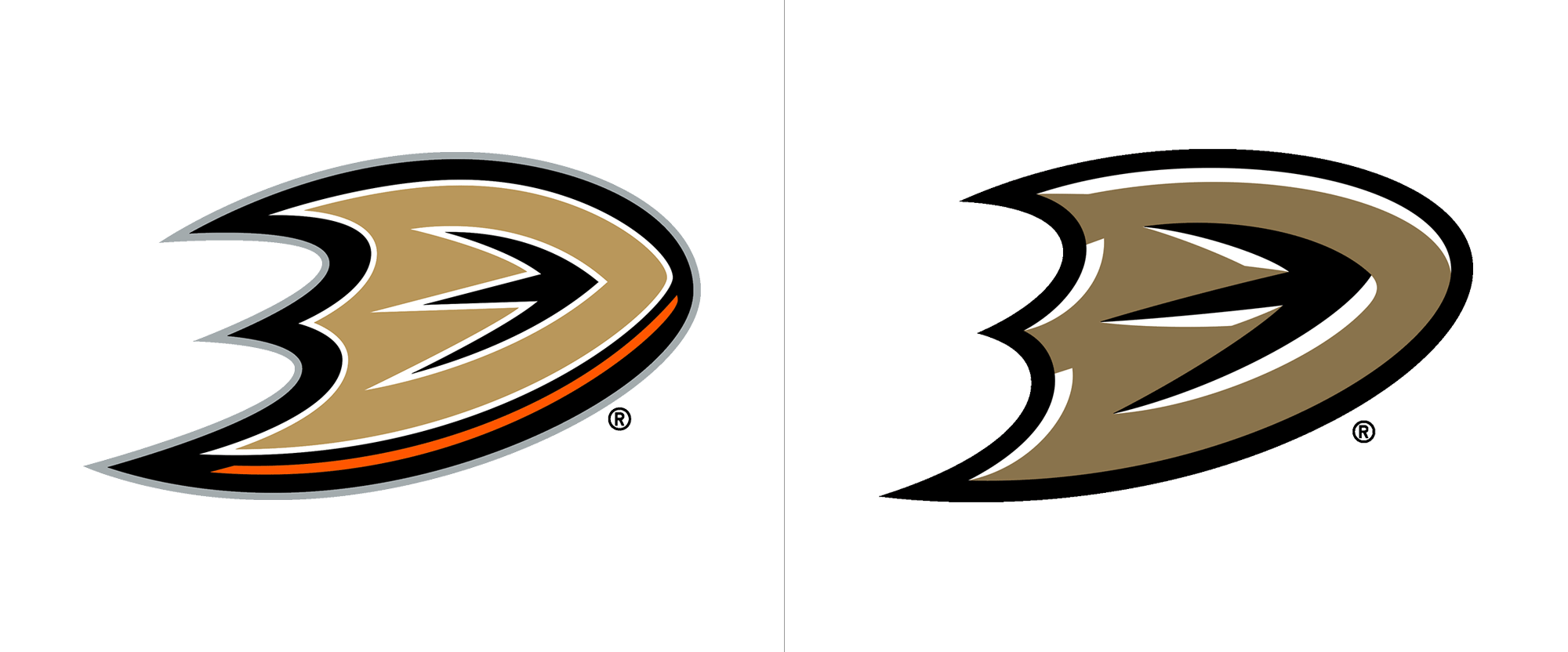 在品牌重塑的過(guò)程中,Anaheim Ducks的設(shè)計(jì)團(tuán)隊(duì)深入挖掘了球隊(duì)的歷史和文化,旨在打造一個(gè)既具有傳承性又具有創(chuàng)新性的品牌形象。他們決定回歸經(jīng)典的Ducks logo,并對(duì)其進(jìn)行現(xiàn)代化的改造。新logo保留了原有的鴨形面具元素,但采用了更加鮮明、動(dòng)感的橙色作為主色調(diào),以凸顯球隊(duì)位于橙縣的地理特色。同時(shí),面具上的眼睛被設(shè)計(jì)得更加犀利、有力量,象征著球隊(duì)在冰球場(chǎng)上無(wú)所畏懼、勇往直前的精神。