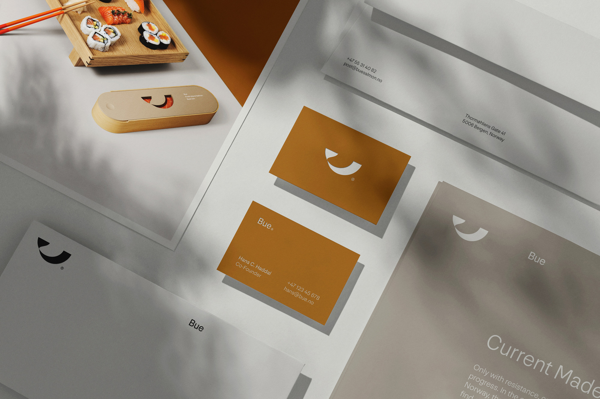 在視覺形象方面,新的品牌標(biāo)識(shí)摒棄了舊標(biāo)識(shí)中過于復(fù)雜的繩索、氣泡和剪貼畫式的三文魚圖案,以及混亂的排版。新標(biāo)識(shí)由圖標(biāo)和字標(biāo)組成,兩者可獨(dú)立使用,其中圖標(biāo)作為主要的品牌標(biāo)識(shí)。這一圖標(biāo)以極簡(jiǎn)和抽象的方式代表三文魚,雖然其比例和解剖學(xué)結(jié)構(gòu)與真實(shí)三文魚相比略顯模糊,但其主要目的是傳達(dá)“魚”的概念。字標(biāo)采用NN Nouvelle Grotesk字體,簡(jiǎn)潔而優(yōu)雅。整體品牌形象延續(xù)了圖標(biāo)和字標(biāo)的斯堪的納維亞極簡(jiǎn)風(fēng)格,采用清晰的排版、有品味的布局、極地色彩以及令人驚嘆的風(fēng)景攝影和視頻。