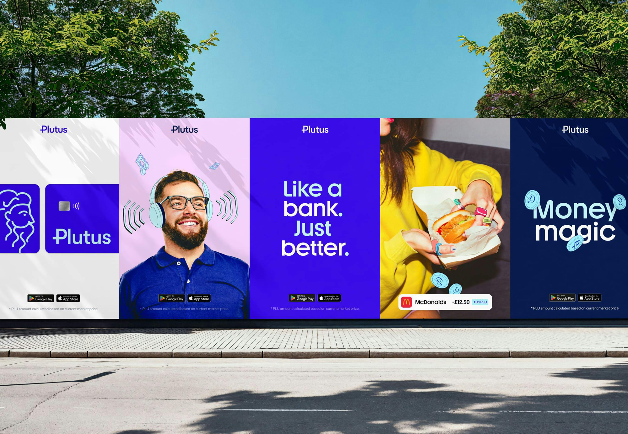 Plutus的品牌形象設(shè)計(jì)巧妙融合了金融語(yǔ)言與消費(fèi)者友好的元素。其字標(biāo)中的大寫“P”同時(shí)作為自身加密貨幣Plu的符號(hào),展現(xiàn)了品牌對(duì)金融與加密世界的雙重詮釋。清晰、易讀且富有特色的字體設(shè)計(jì),與品牌標(biāo)志、“face”圖標(biāo)及整體圖標(biāo)體系保持一致。品牌攝影中,普通人物的形象與代表產(chǎn)品和服務(wù)、福利與獎(jiǎng)勵(lì)的趣味插畫相結(jié)合,旨在將Plutus從數(shù)字加密世界帶入現(xiàn)實(shí)生活。