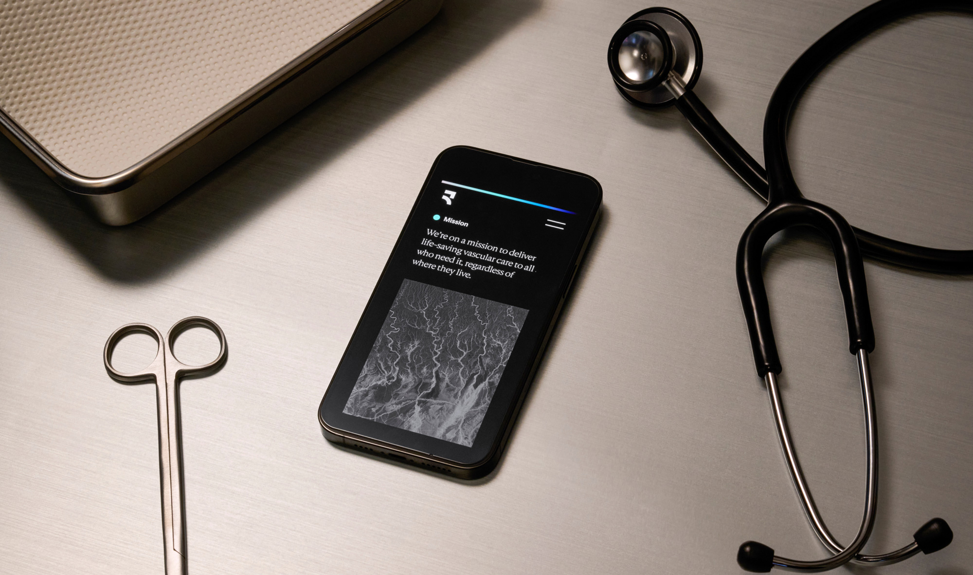 Remedy Robotics的標(biāo)識(shí)由兩部分組成。上部分是一個(gè)傾斜并向前指的形狀,象征著Remedy的前瞻性。下部分則呈現(xiàn)出一個(gè)動(dòng)脈的橫截面。這兩部分結(jié)合在一起,既形成了一個(gè)易于識(shí)別的字母和形狀,也像一個(gè)邁向進(jìn)步的人。從側(cè)面看,這個(gè)標(biāo)識(shí)更像是兩個(gè)小寫字母“r”,與Remedy的首字母相呼應(yīng)。設(shè)計(jì)師還從衛(wèi)星拍攝的河流和其他水道的照片中汲取靈感,將這些圖像作為視覺(jué)隱喻,象征Remedy將改變生命的關(guān)懷帶給世界各地的人們。