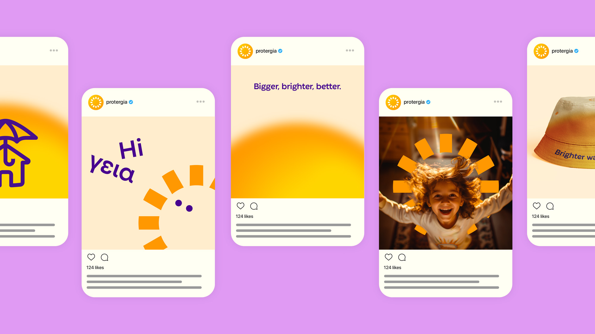 新標(biāo)志堅(jiān)持使用全小寫字母的方法,與“p”和“g”的下降部分保持平衡,并保持了“g”和“a”的單層結(jié)構(gòu)。最大的變化是將一個(gè)圖標(biāo)集成到字標(biāo)中,用抽象的太陽圖標(biāo)替換了“o”。這種方法的執(zhí)行非常出色,使太陽看起來像是一個(gè)與其他字母在重量和比例上相匹配的圖形。品牌的身份圍繞太陽展開,首先是可以在字標(biāo)之外獨(dú)立使用的圖標(biāo),與攝影作品相得益彰。其次是溫暖的太陽漸變,最后是背景中閃耀的太陽的攝影作品,呼應(yīng)了橙色和黃色的調(diào)色板,并增強(qiáng)了溫暖和模糊的感覺。