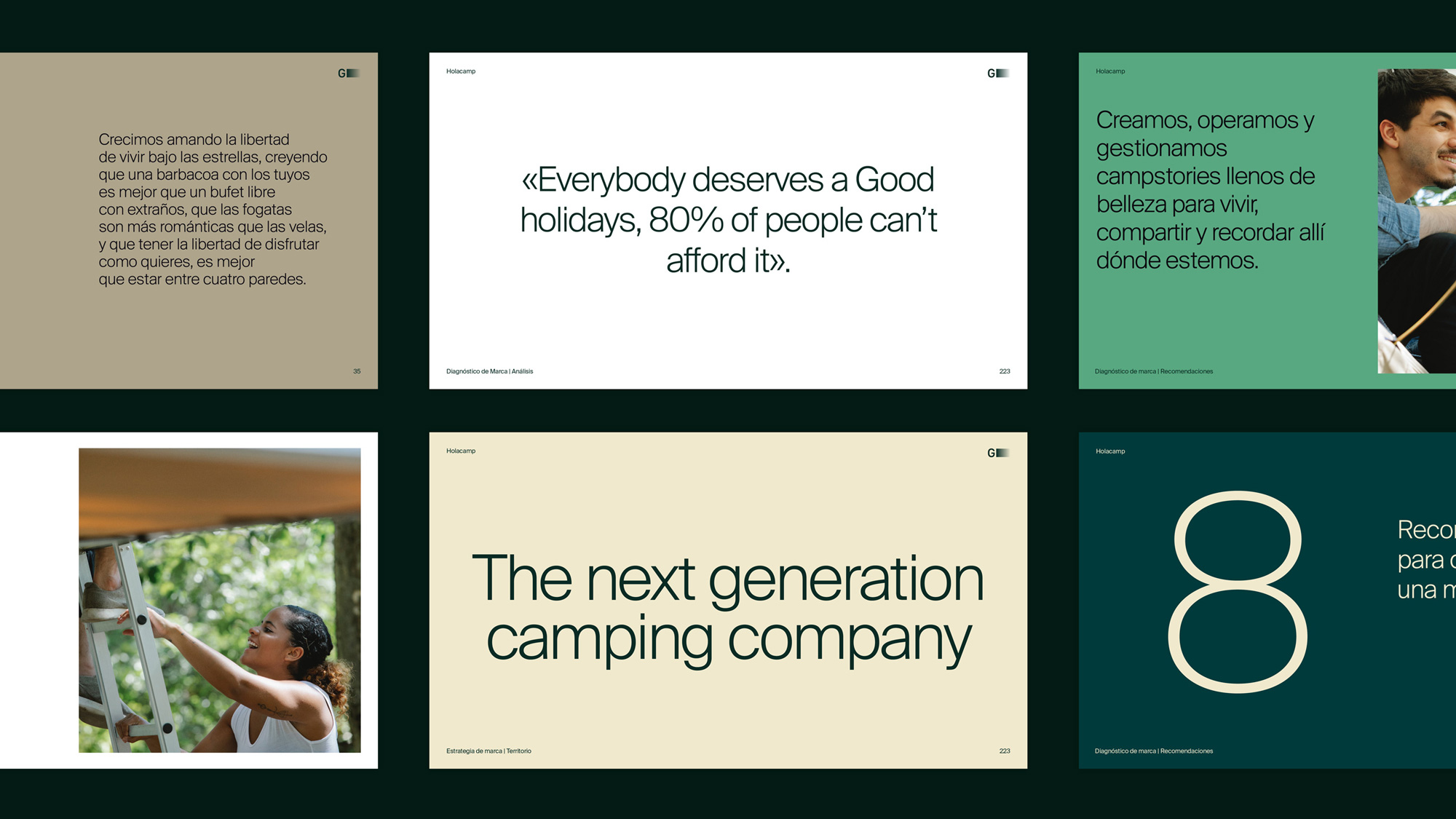 Grávita設(shè)計團隊面臨的挑戰(zhàn)是定義一個戶外住宿品牌,該品牌將整合并擴展現(xiàn)有的露營地產(chǎn)品,通過創(chuàng)造專有的品牌體驗來提升更傳統(tǒng)露營地的感知和價值,從而允許在西班牙和葡萄牙擴展和開發(fā)一種新的旅游模式。他們重新定義了露營的概念,將戶外和服務(wù)型住宿的最佳元素相結(jié)合,將傳統(tǒng)概念轉(zhuǎn)變?yōu)閷で筮@些替代品的受眾以及剛開始發(fā)現(xiàn)它們的受眾的增長和偏好驅(qū)動力。他們制定了一個明確的價值主張:將我們所熟知的露營變得非凡——“Camping made extraOUTdinary”。這一概念將HolaCamp提升并定位為新一代露營地,它通過與傳統(tǒng)酒店和露營地相比的優(yōu)勢,構(gòu)建了戶外生活概念。