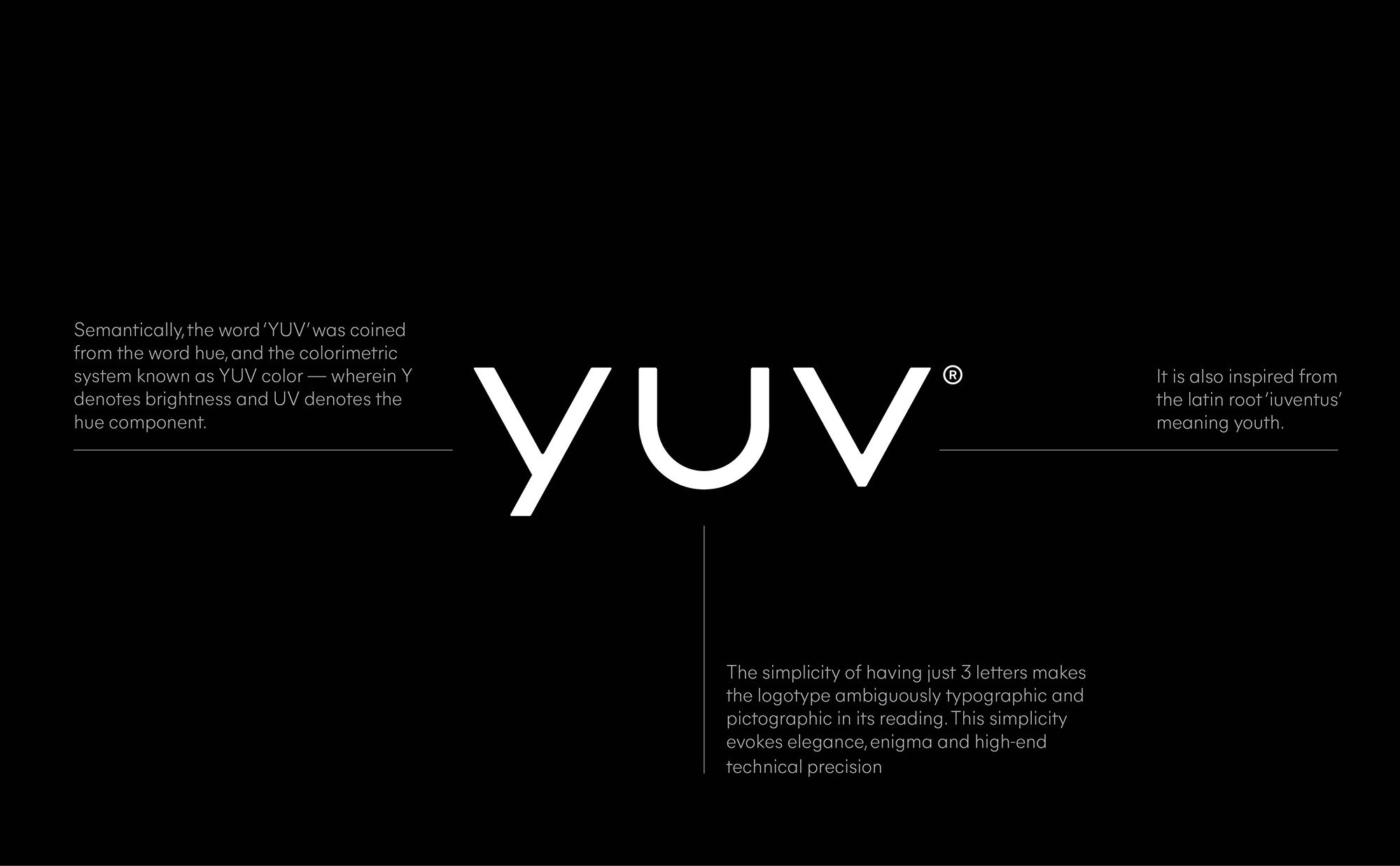 Graphéine(位于法國里昂和巴黎)負(fù)責(zé)了yuv? Beauty的品牌設(shè)計(jì)工作。品牌視覺形象由YUV?字標(biāo)和一個(gè)獨(dú)立的徽章構(gòu)成。品牌命名簡(jiǎn)潔而富有深意,既傳達(dá)了優(yōu)雅與高端技術(shù)精確度的氛圍,又通過“Your Unlimited Vision”的品牌口號(hào)展現(xiàn)了其遠(yuǎn)大愿景。YUV?名稱還借鑒了YUV數(shù)字色彩模型,其中“Y”代表亮度,“UV”代表色度成分,同時(shí)受到拉丁詞根“iuventus”(意為“青春”)的啟發(fā),呼應(yīng)品牌的核心目標(biāo)群體。