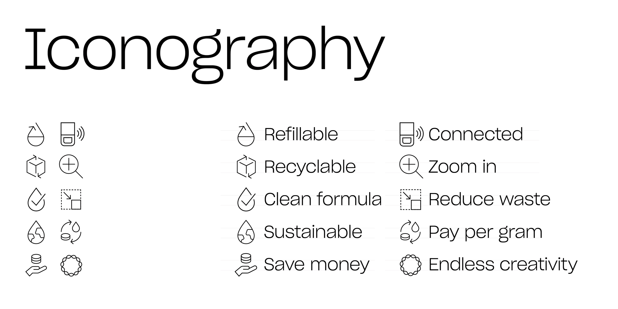 為了更直觀地展示技術(shù)層面,Graphéine設(shè)計(jì)了一系列象形圖和3D等距技術(shù)插圖,這些元素被廣泛應(yīng)用于廣告活動(dòng)和說明手冊(cè)中。在品牌攝影的藝術(shù)指導(dǎo)上,Graphéine確立了兩大原則:一是將模特置于中性灰色背景前,凸顯發(fā)型的色彩;二是聚焦于專業(yè)人士對(duì)工具的使用,展示機(jī)器與配飾在染發(fā)師手中的應(yīng)用。