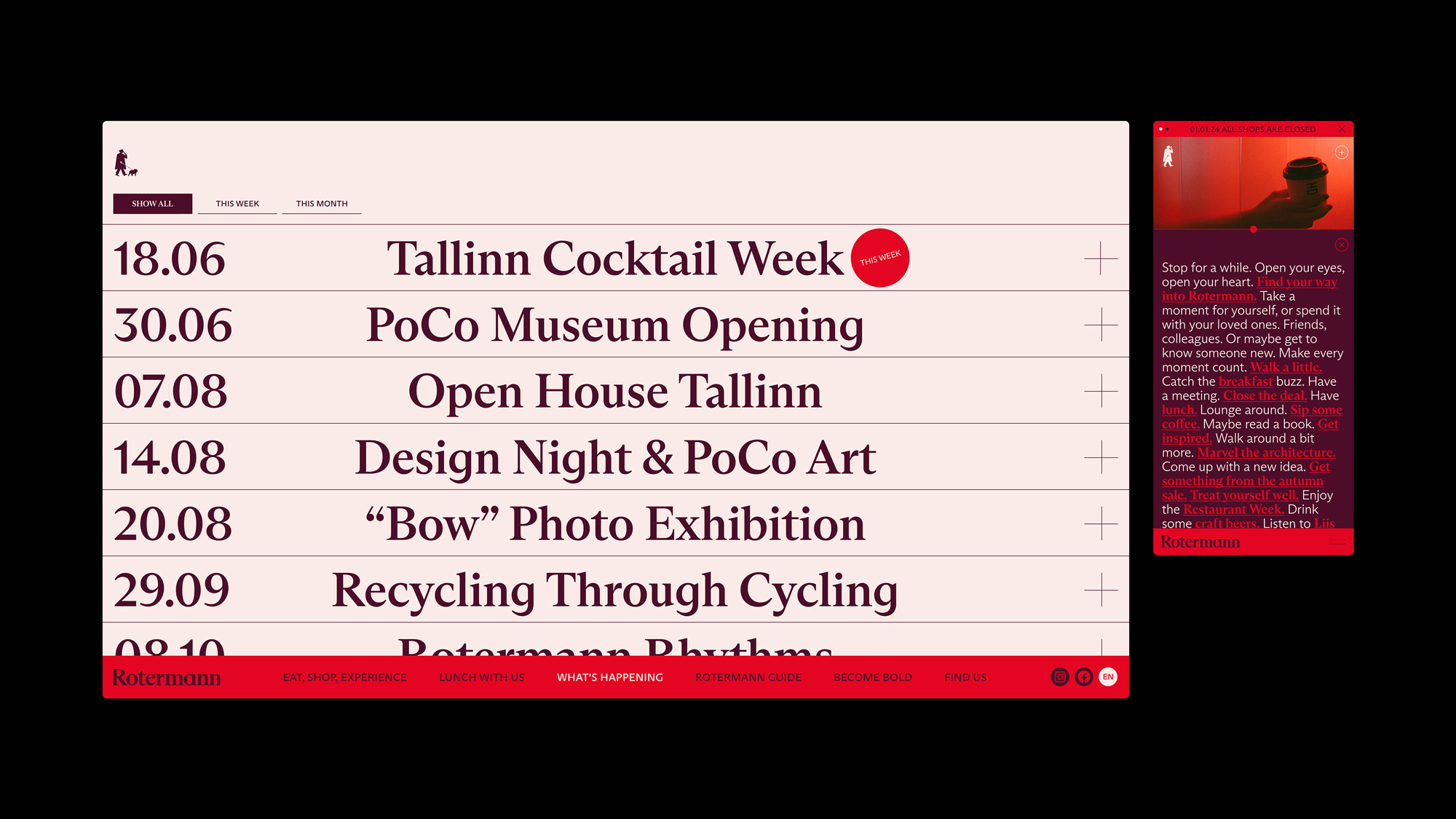 同時(shí),品牌色彩的選擇也頗具匠心。紅色與紅色的搭配,點(diǎn)綴以白色,既醒目又富有活力,完美契合了Rotermann作為“大膽之城”的品牌形象。無(wú)論是在品牌包裝設(shè)計(jì)還是公司VI設(shè)計(jì)上,這種簡(jiǎn)潔而大膽的色彩運(yùn)用都讓人印象深刻。