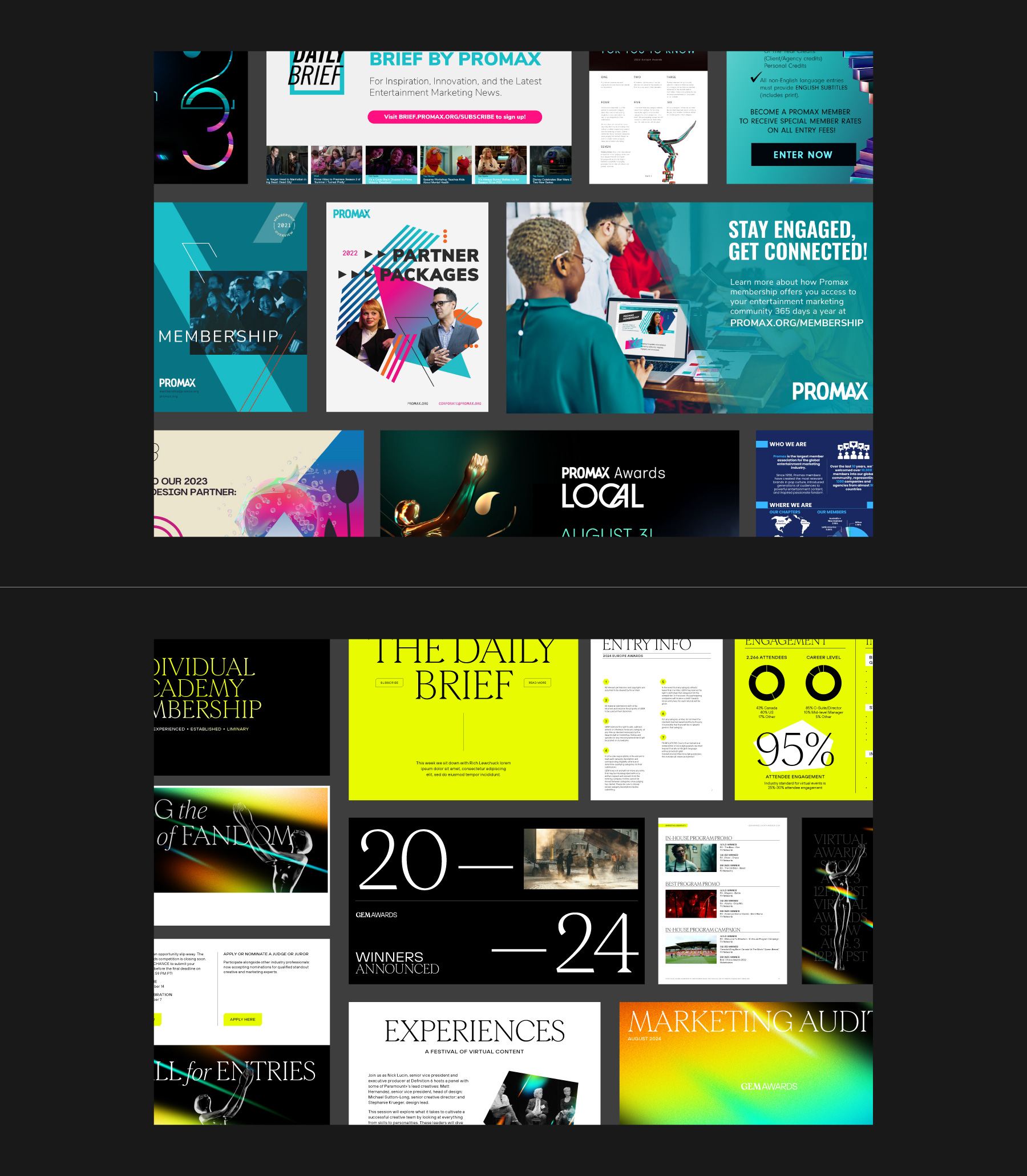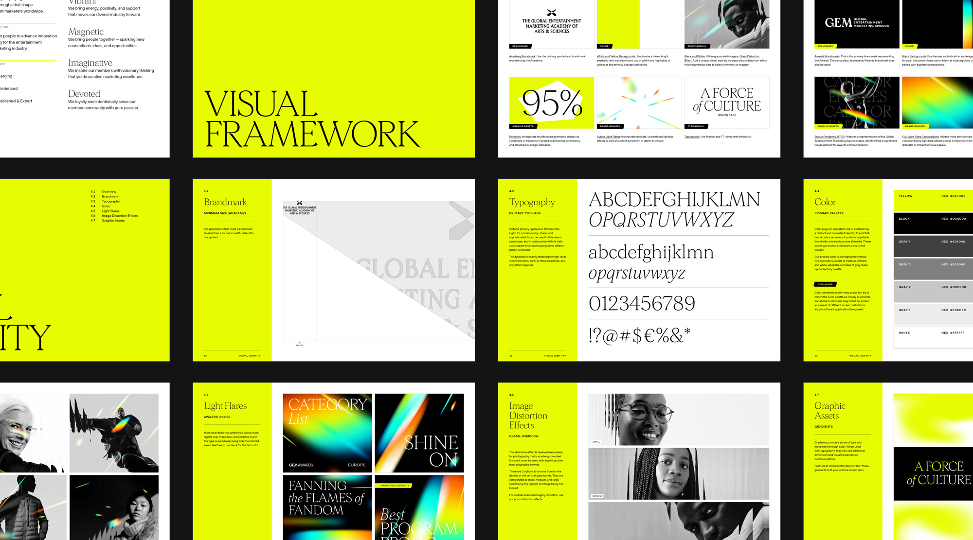 首先,了解項(xiàng)目背景對于理解新LOGO的設(shè)計(jì)至關(guān)重要。G.E.M.A.成立于1956年,前身為Promax,是一個(gè)致力于推動(dòng)娛樂行業(yè)發(fā)展的創(chuàng)意與戰(zhàn)略智庫。該學(xué)院擁有廣泛的全球網(wǎng)絡(luò),旨在表彰營銷和創(chuàng)意的卓越成就,促進(jìn)行業(yè)專業(yè)人士的成長與包容性,并豐富我們的文化景觀。然而,原品牌名稱Promax可能因其過于商業(yè)化或缺乏足夠的權(quán)威性,無法滿足學(xué)院當(dāng)前的發(fā)展需求。因此,更名為G.E.M.A.并進(jìn)行全面品牌重塑,成為學(xué)院發(fā)展的必然選擇。