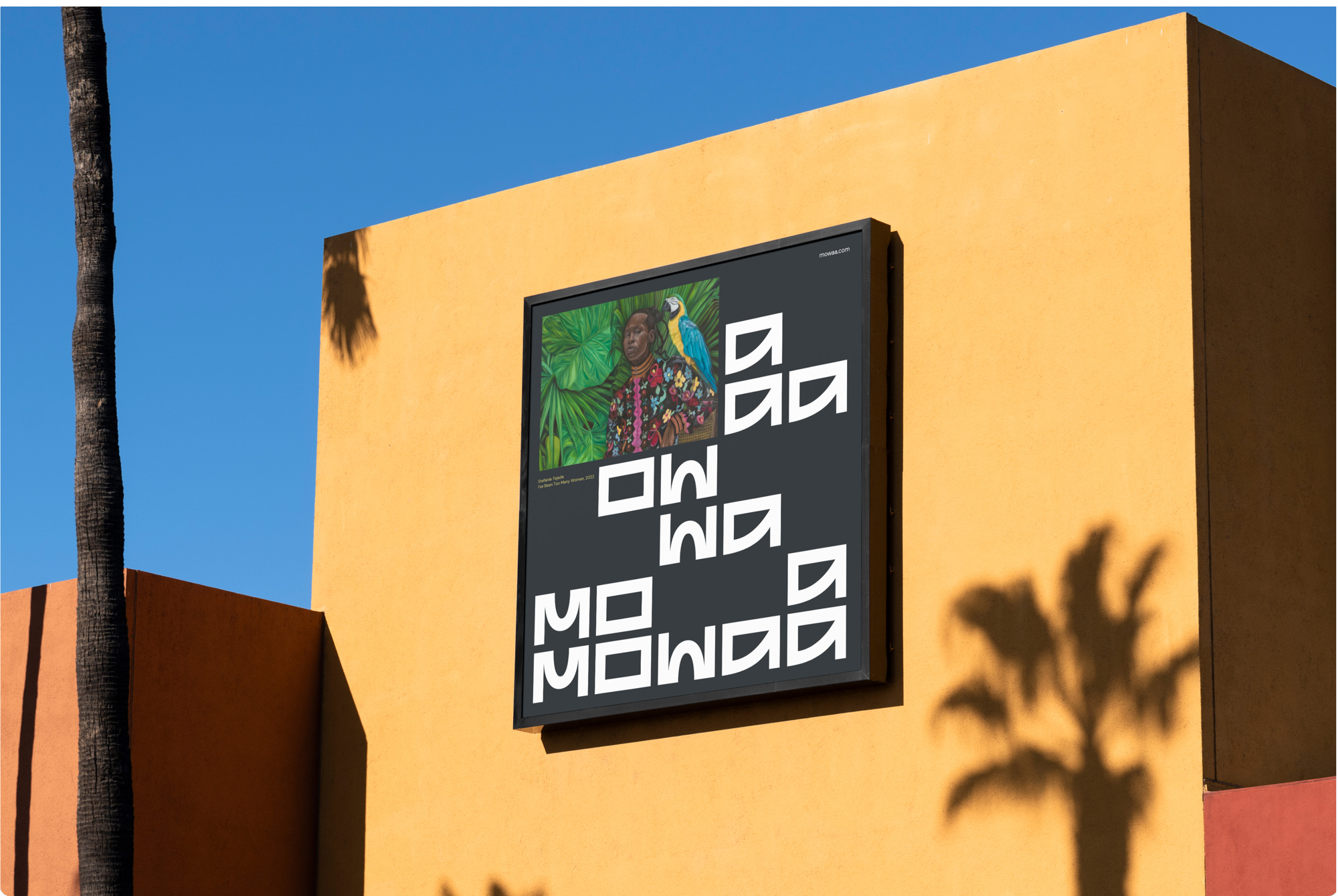 除了LOGO設(shè)計(jì)本身,Human After All還為MOWAA提供了一個(gè)5列網(wǎng)格的布局方法。這種方法允許藝術(shù)品與LOGO進(jìn)行互動(dòng)或圍繞LOGO展示,使得MOWAA團(tuán)隊(duì)可以靈活地調(diào)整他們的系統(tǒng)以適應(yīng)各種視覺元素,同時(shí)在整個(gè)應(yīng)用過程中將LOGO作為錨定元素。