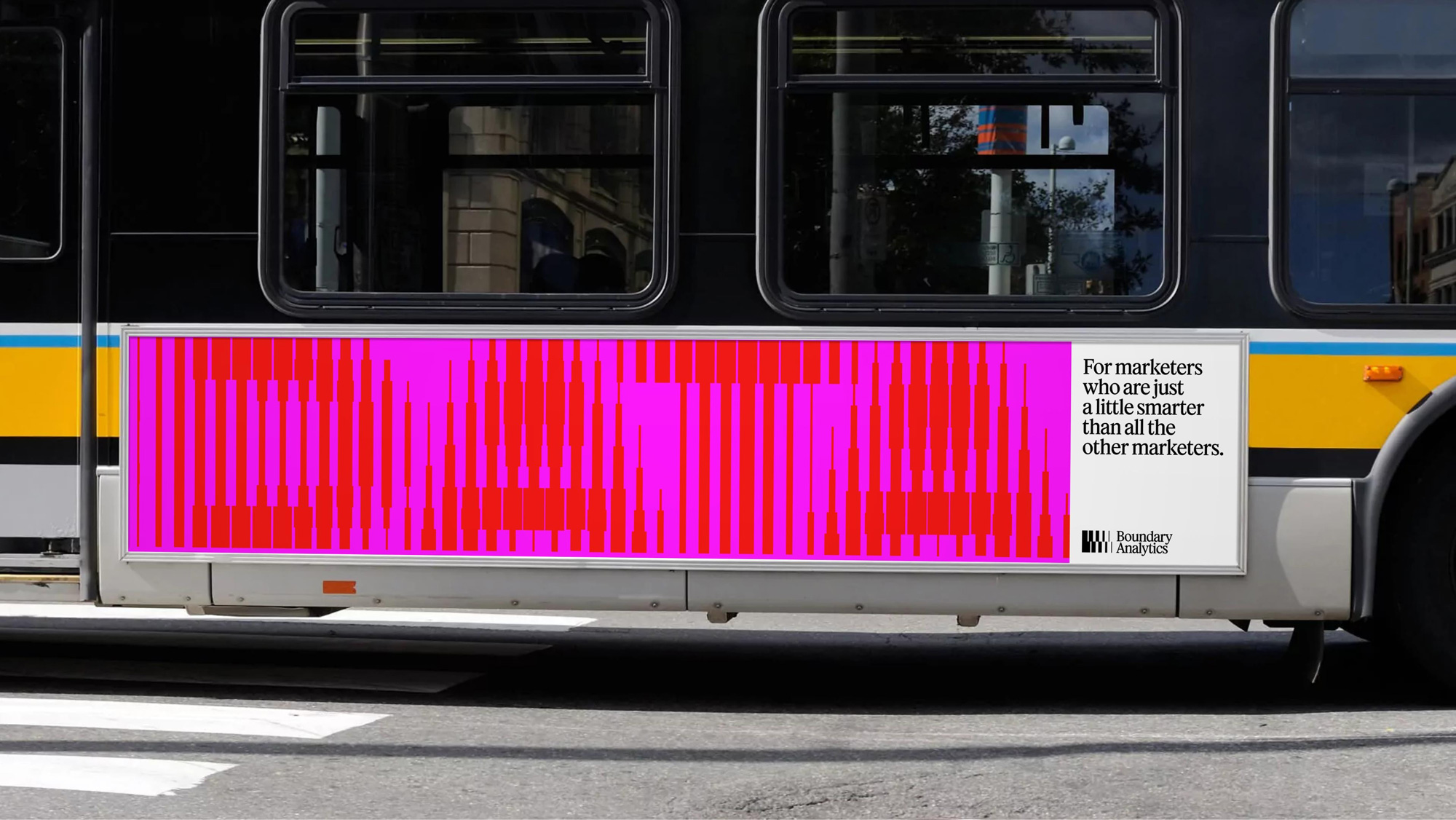 在色彩和字體的選擇上,Boundary Analytics同樣別具一格。它采用了一種充滿(mǎn)活力的數(shù)字色彩搭配,與商業(yè)字體Feature Text相結(jié)合,既展現(xiàn)了品牌的多樣性,又吸引了創(chuàng)意受眾的目光。這種色彩被應(yīng)用在一系列生成性圖案中,反映了電子表格上的數(shù)值。Boundary Display,一種定制的展示字體,也有常規(guī)和擴(kuò)展兩種寬度,延續(xù)了數(shù)據(jù)啟發(fā)的圖案主題,使品牌在各種排版應(yīng)用中更加醒目。