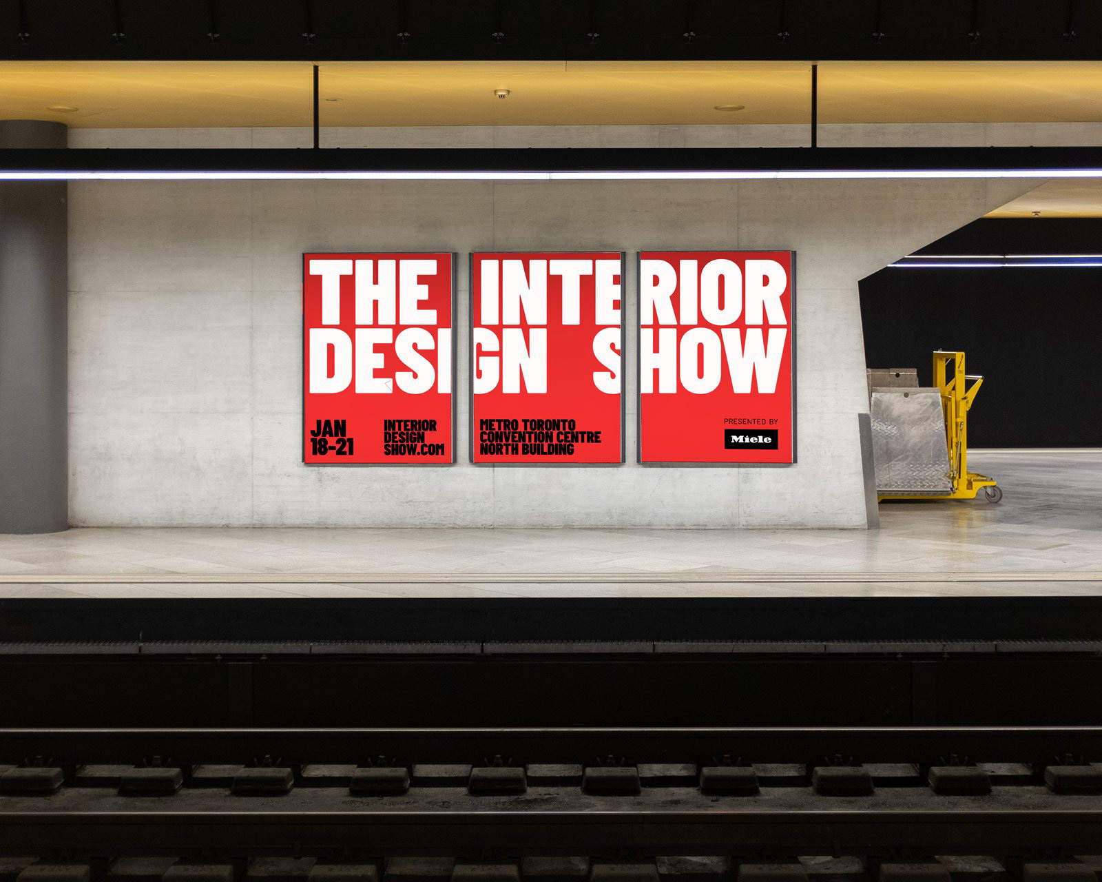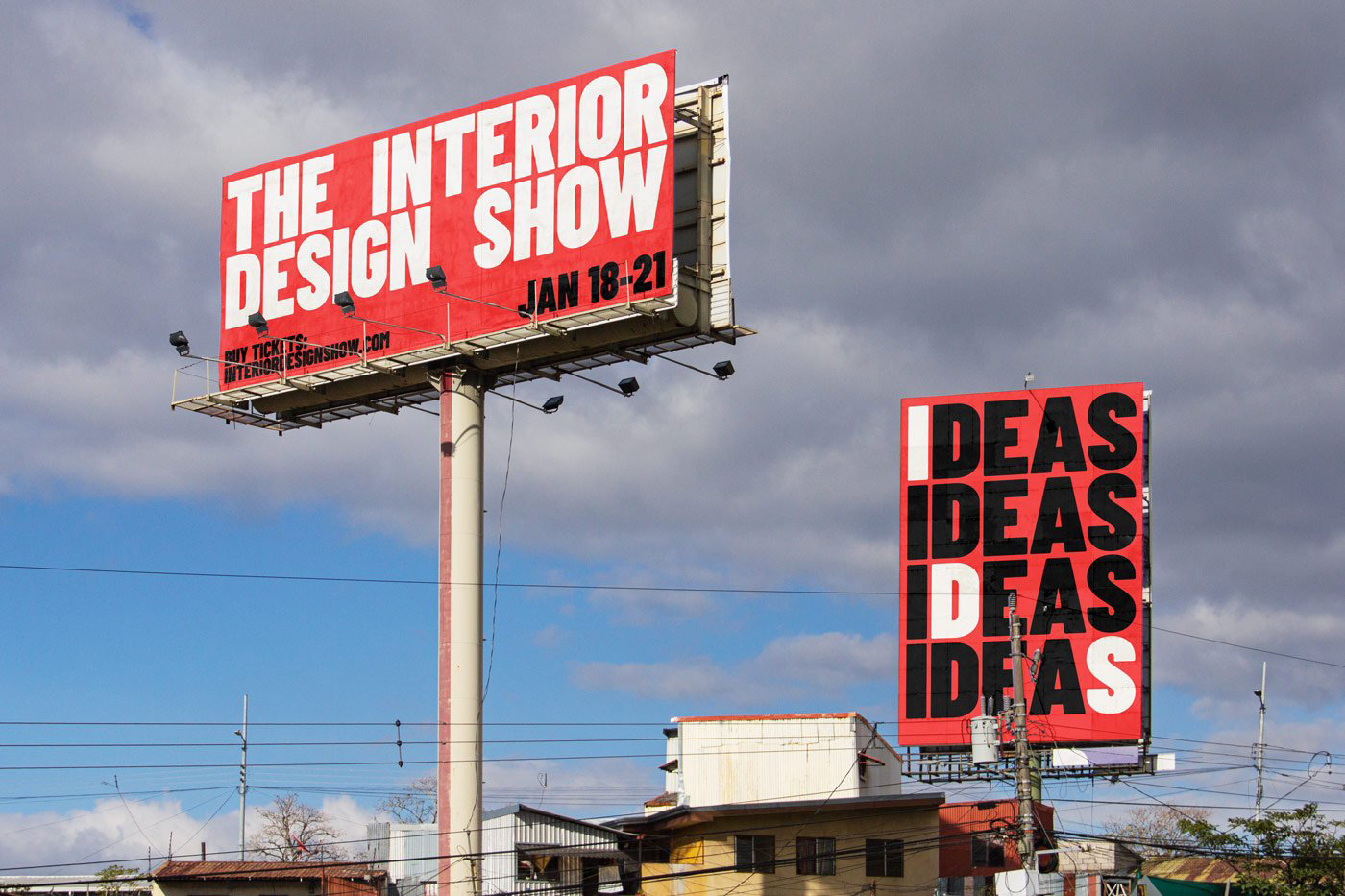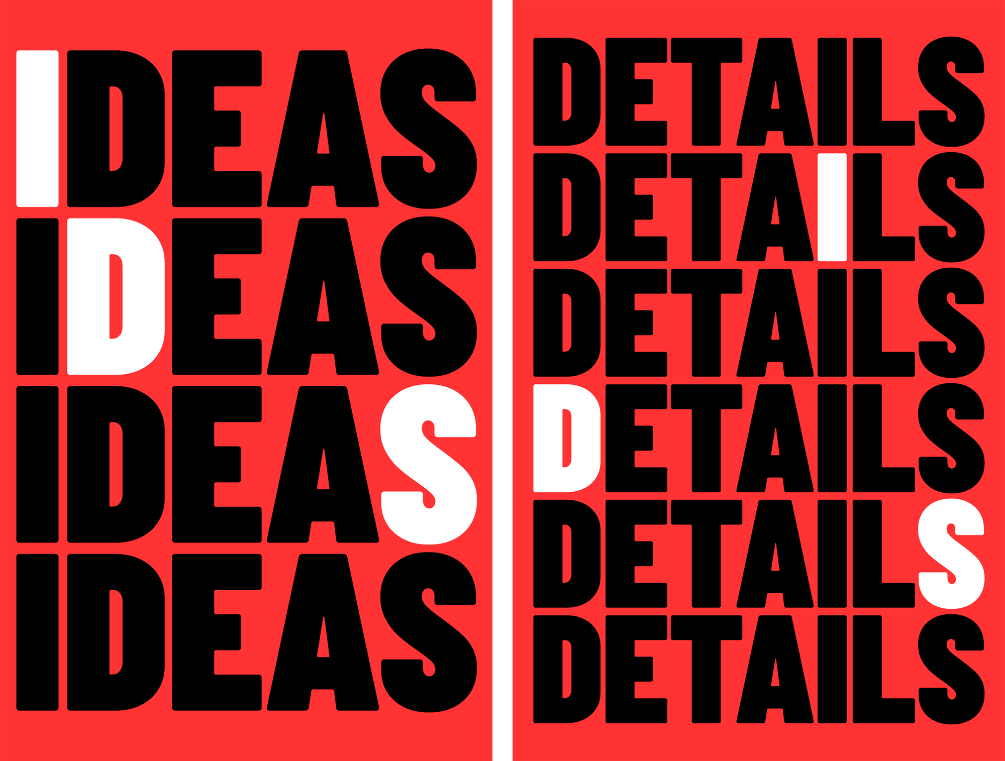 盡管設(shè)計中重復(fù)單詞并突出“I”、“D”和“S”的做法略顯巧妙,但在某些布局中,這種重復(fù)過于突出,反而降低了整體的吸引力和動感。然而,在實際應(yīng)用中,巨大的Barlow Condensed字體和鮮明的色彩在空間中大膽突出,為原本可能空曠無特色的場地提供了即時的品牌識別。