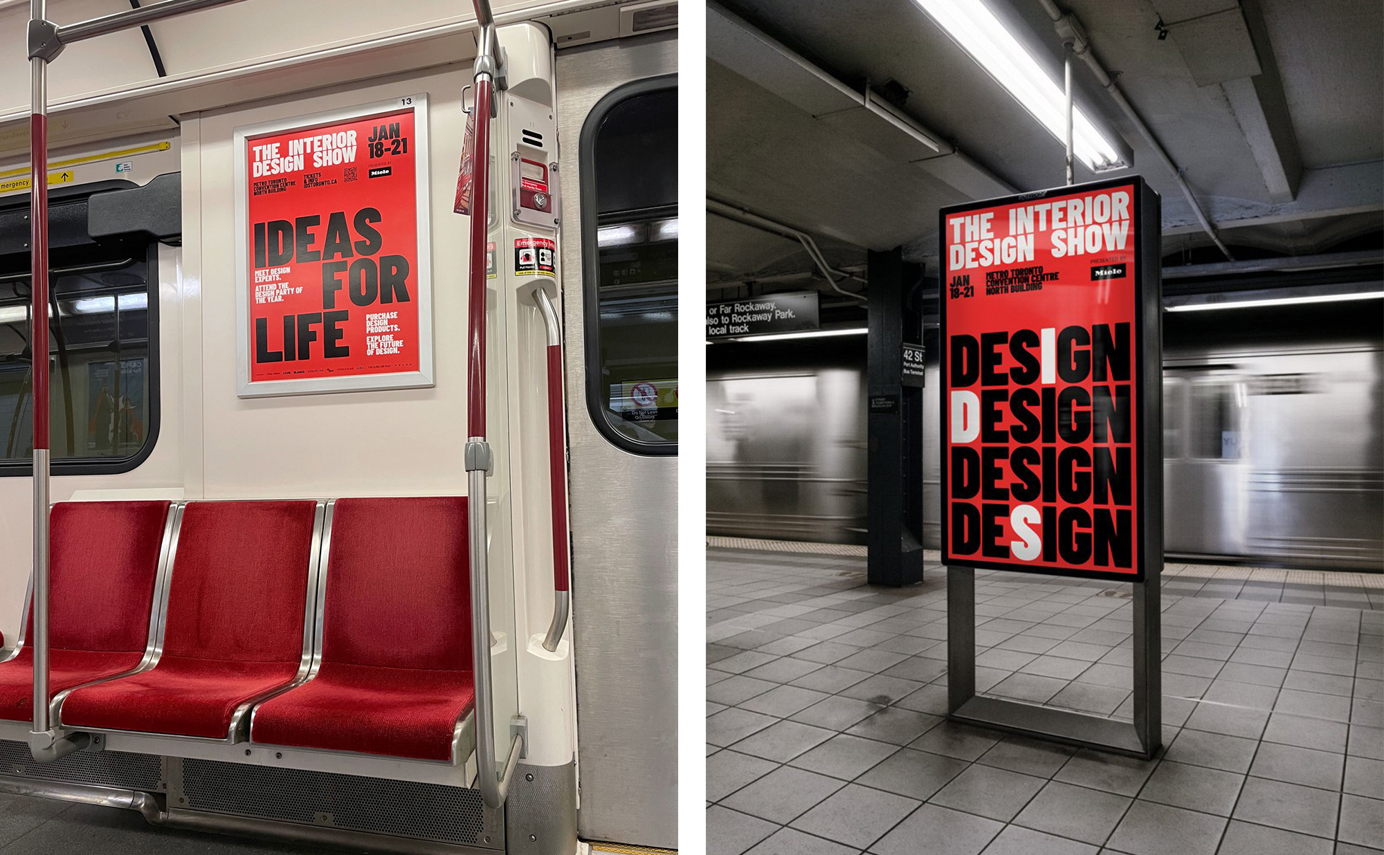2024年的IDS品牌形象設(shè)計由Sali Tabacchi操刀,新標(biāo)志以網(wǎng)格格式巧妙地排列了“The Interior Design Show”的字型,營造出一種形式上的和諧與目標(biāo)感。粗體字型的使用反映了展覽的雄心壯志,而主色調(diào)紅色和白色則象征著IDS代表加拿大設(shè)計的身份。此外,通過從與設(shè)計相關(guān)的語句和詞模式中巧妙地選取字母來突出縮寫“IDS”,旨在表達(dá)這些理念如何嵌入展覽的DNA中。