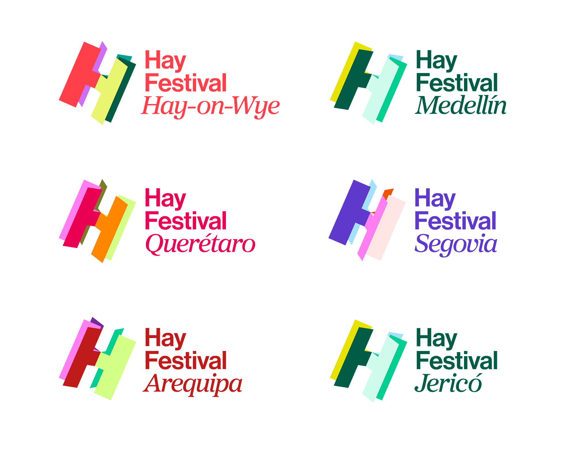 Hay Festival Global源于威爾士的書籍小鎮(zhèn)Hay-on-Wye,從最初的書籍慶典發(fā)展成為涵蓋文學、藝術、科學、政治、音樂與喜劇等多領域的國際性盛會。隨著其在哥倫比亞、秘魯、墨西哥、西班牙及美國等地項目的不斷拓展,Hay Festival Global急需一個新的視覺形象來更好地傳達其品牌理念與全球視野。