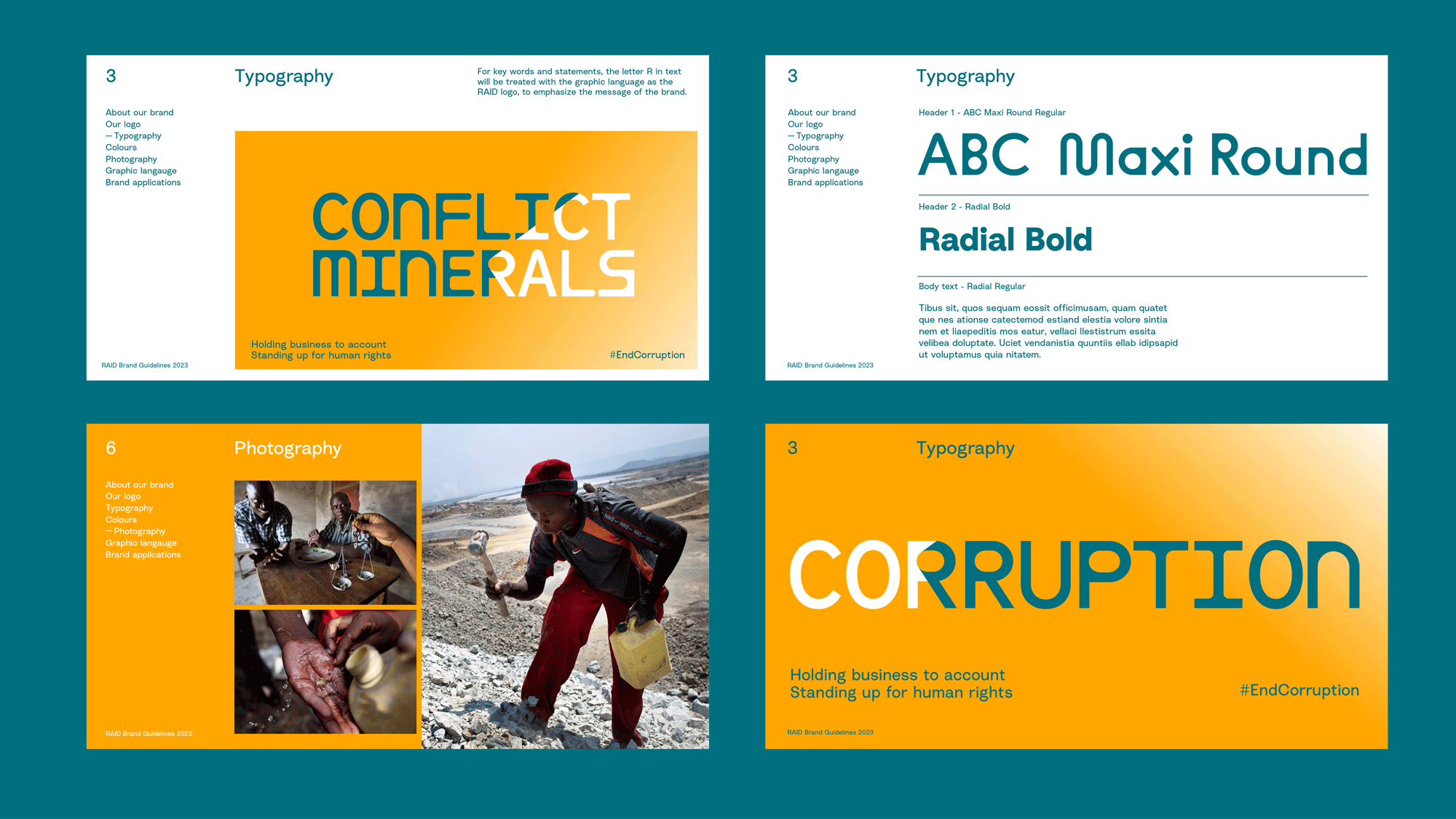 RAID自成立以來,一直秉持著嚴(yán)謹(jǐn)調(diào)查、積極倡導(dǎo)與依法行事的原則,力求加強(qiáng)企業(yè)監(jiān)管,為受企業(yè)不當(dāng)行為影響的人們伸張正義。隨著組織目標(biāo)的不斷擴(kuò)展,RAID需要一個更加靈活多變的視覺形象,以便在應(yīng)對各種挑戰(zhàn)的同時,保持其嚴(yán)肅性并吸引公眾關(guān)注。