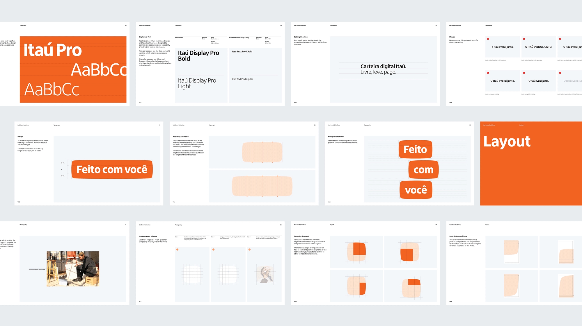 Pentagram設(shè)計團隊與Itaú內(nèi)部設(shè)計團隊攜手,共同推動了這一品牌重塑項目。他們突破了傳統(tǒng)的方形設(shè)計,通過增加角落曲線的半徑并圓潤側(cè)邊,創(chuàng)造了一種更加有機和動態(tài)的全新形狀。這種形狀被命名為“pedra”(葡萄牙語和西班牙語中的“石頭”),靈感來源于經(jīng)過時間打磨和拋光的河石,寓意著品牌的悠久歷史和持久耐力。同時,“pedra”也傳達出一種觸覺和個人化的感覺,與Itaú的銀行服務(wù)理念相契合。