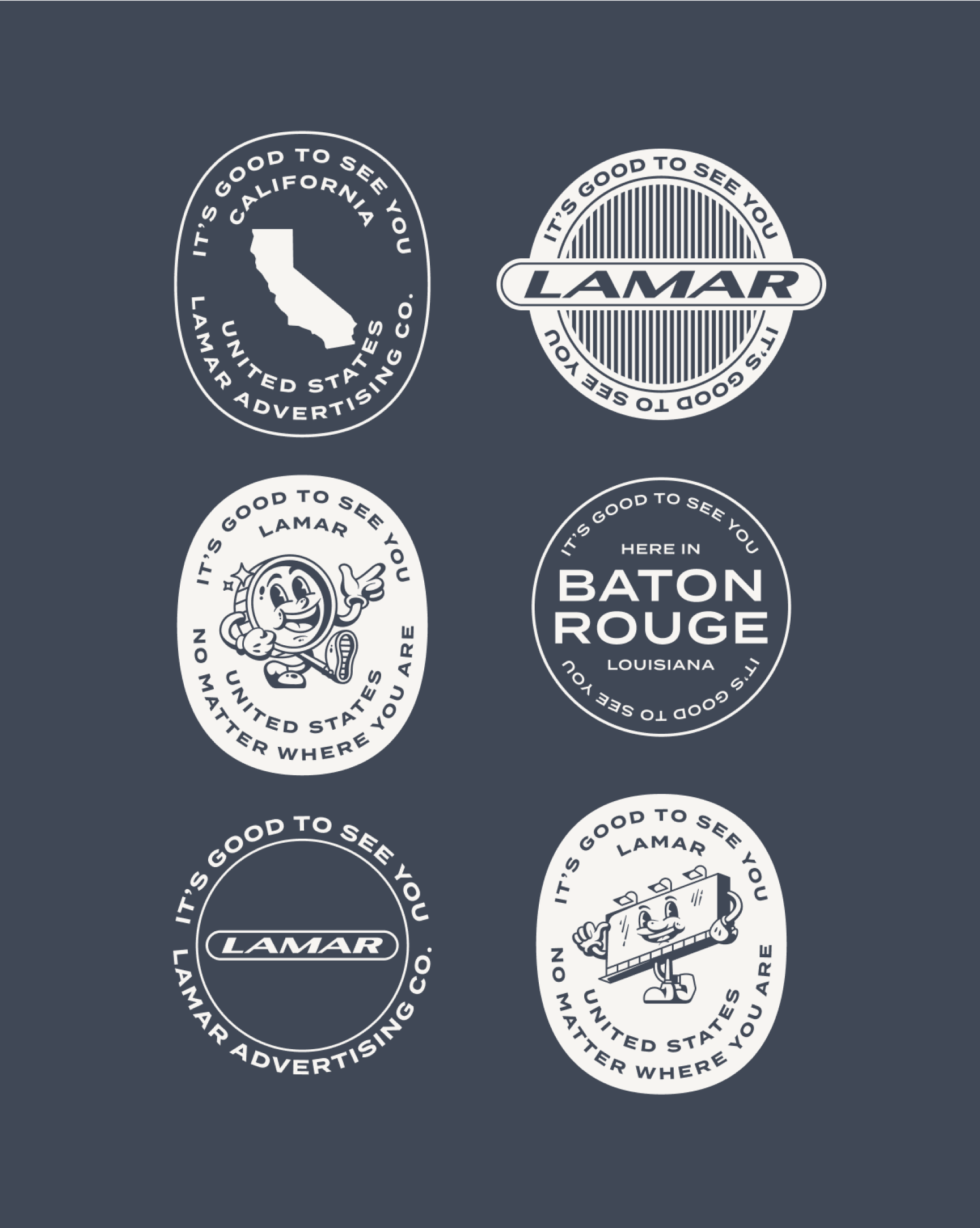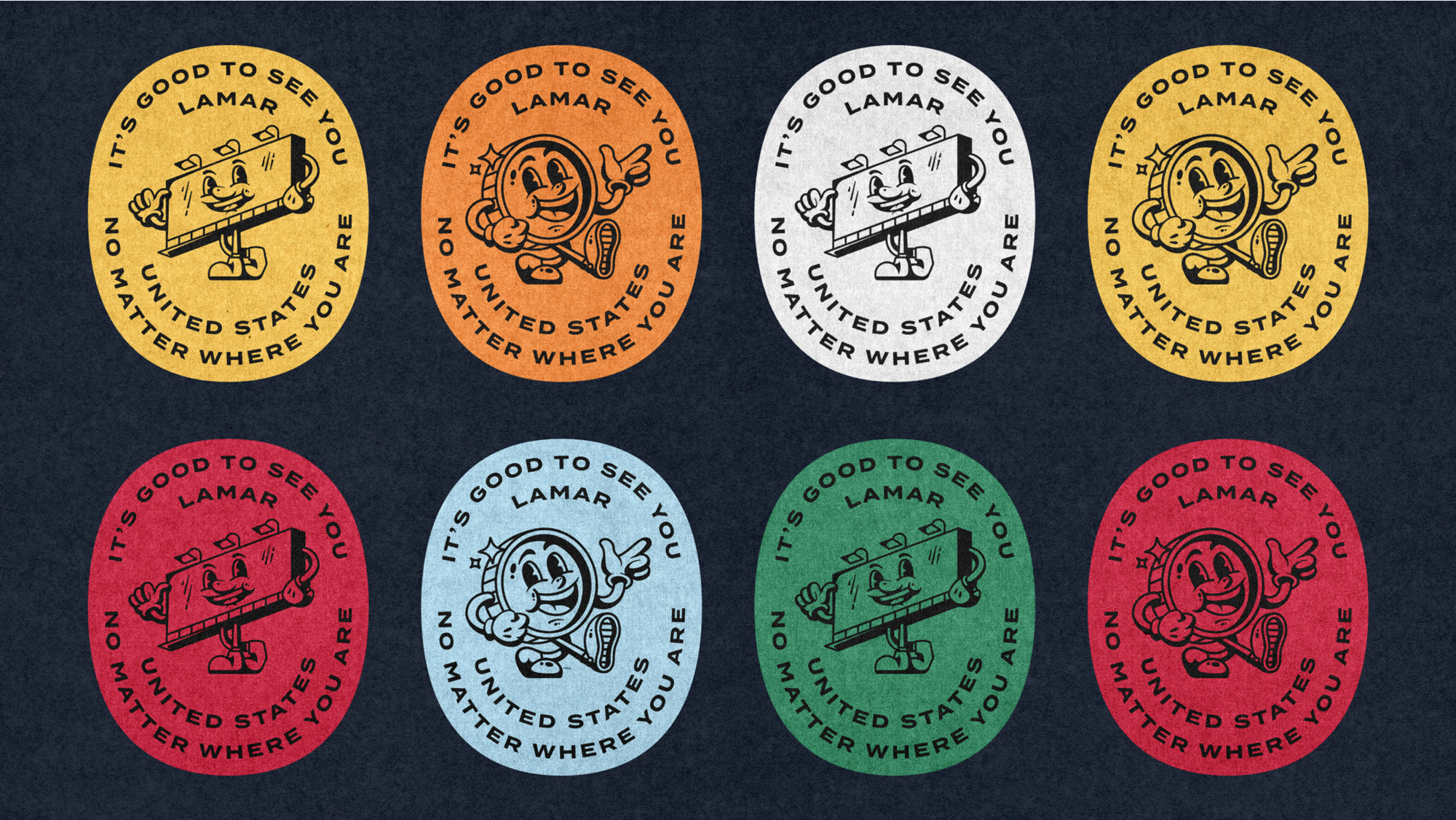 除了logo的煥新,Heyo設(shè)計工作室還對Lamar的品牌色彩和字體進行了深入的挖掘和創(chuàng)新。他們從Lamar總部所在地——路易斯安那州巴吞魯日的當(dāng)?shù)匚幕刂屑橙§`感,為品牌注入了新的活力和相關(guān)性。同時,他們還設(shè)計了兩個具有深刻歷史意義的吉祥物“Lenny the Penny”和“Billy the Billboard”,分別代表著Lamar的創(chuàng)始故事和核心業(yè)務(wù)。