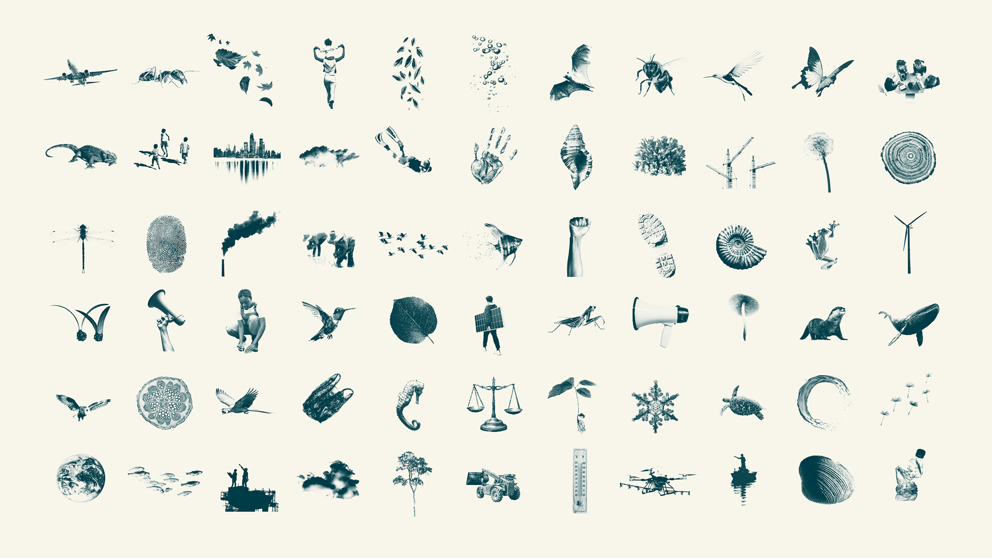 作為獨立標志,其效果可能仍有待商榷,但作為Johnson Banks為組織創(chuàng)建的更大生態(tài)系統(tǒng)的一部分——無論是字面意義還是比喻意義——它實際上都相當驚人且全面。他們可以使用一個龐大的單色、海報化插圖庫來創(chuàng)建任何數(shù)量的拼貼畫。這項工作之所以如此成功,部分原因在于拼貼畫的限制:只能組合兩種顏色,并允許元素重疊,從而創(chuàng)造出一些美妙且一致的紋理。