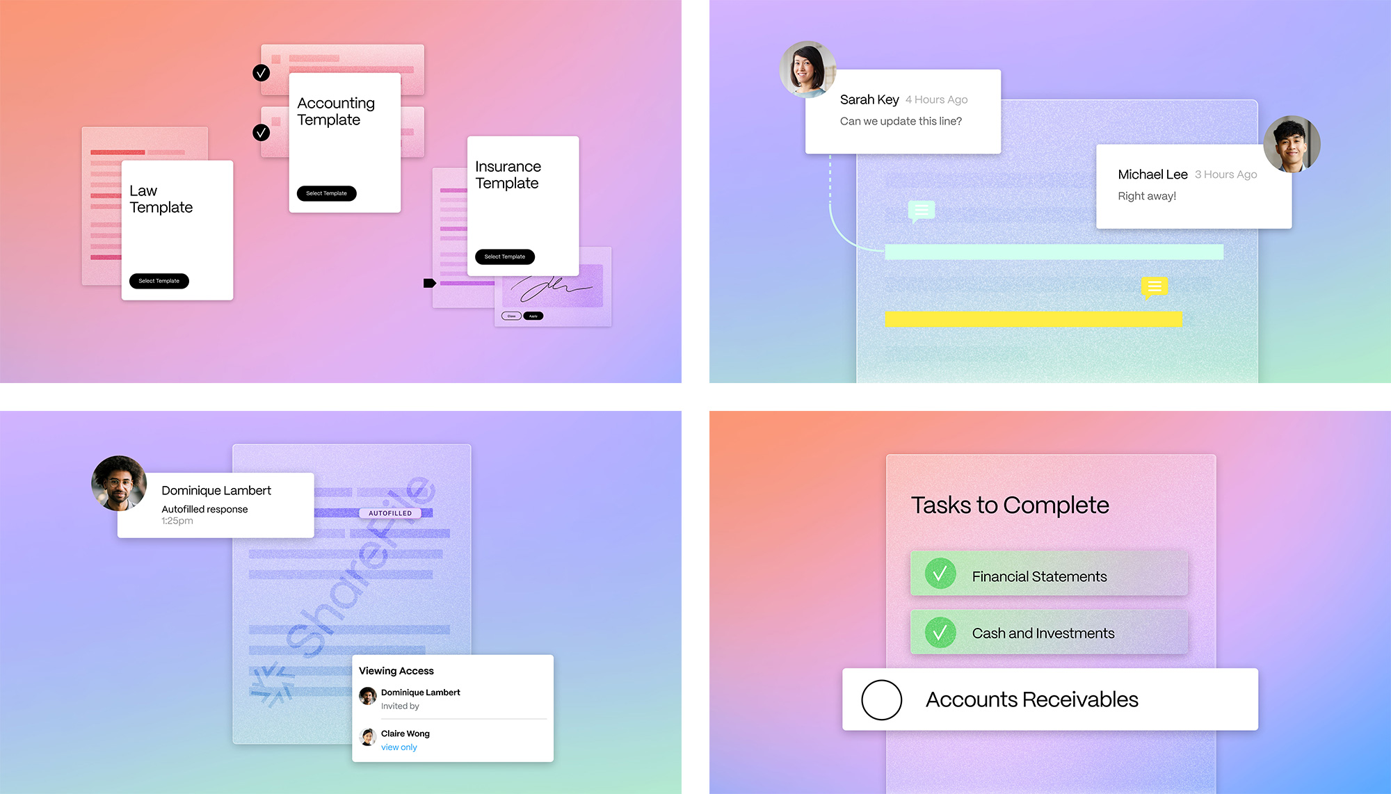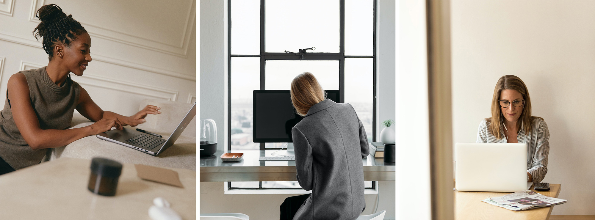 新品牌系統(tǒng)采用了豐富的資產(chǎn)和媒體分類,以打造一種有質(zhì)感、引人入勝的體驗(yàn)。抽象的3D平面動(dòng)畫形狀營(yíng)造出流動(dòng)和輕松的感覺,而溫暖的人物肖像則在家居化的工作環(huán)境中,真實(shí)描繪了當(dāng)代工作的生活場(chǎng)景。此外,點(diǎn)綴其中的插圖被用來戲劇化地表現(xiàn)關(guān)鍵價(jià)值主張,并為整個(gè)系統(tǒng)增添了趣味性和幽默感。