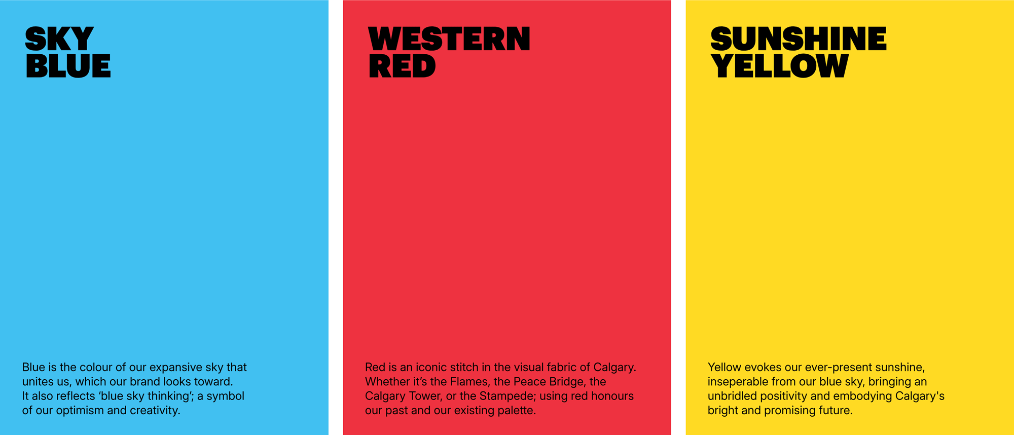 在色彩運用上,新版設(shè)計采用了明亮且充滿活力的主色調(diào),如淺藍(lán)、白色與黃色,這些色彩不僅簡約而富有童趣,還巧妙地與Calgary“藍(lán)天之城”的美譽(yù)相呼應(yīng)。同時,新的字體設(shè)計也顯得尤為出眾,它既保留了Calgary友好與積極的城市性格,又通過獨特的字形處理,使得文字標(biāo)識在視覺上更加醒目與有力。