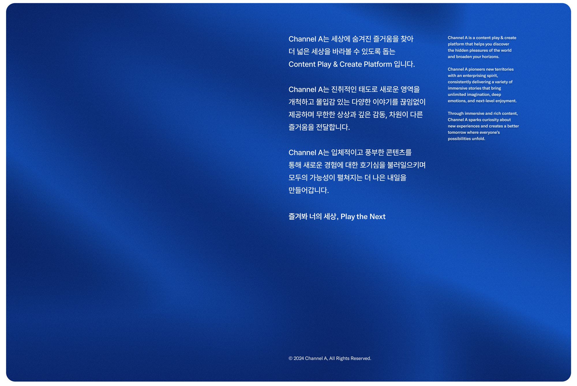 在當(dāng)今瞬息萬(wàn)變的媒體環(huán)境中,品牌的設(shè)計(jì)更新不僅關(guān)乎形象,更關(guān)乎品牌的未來(lái)發(fā)展方向。Channel A作為一家位于韓國(guó)的內(nèi)容平臺(tái),近期進(jìn)行了一次全面的品牌重塑,旨在通過(guò)新的視覺(jué)識(shí)別系統(tǒng)(VI設(shè)計(jì))和品牌形象設(shè)計(jì),強(qiáng)化其在用戶心中的地位,同時(shí)傳達(dá)其與時(shí)俱進(jìn)的發(fā)展理念。