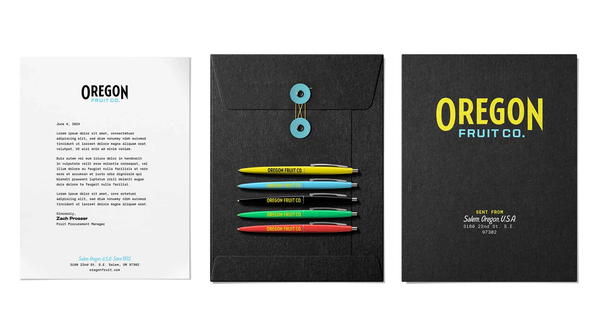 除了logo,我們還為Oregon Fruit Company設(shè)計(jì)了一套全新的視覺識(shí)別設(shè)計(jì)系統(tǒng)。這個(gè)系統(tǒng)根植于公司的歷史,同時(shí)展望未來,旨在為其在未來的市場競爭中奠定堅(jiān)實(shí)的基礎(chǔ)。其中,特別值得一提的是我們?yōu)樵摴径ㄖ频淖煮w。這種字體既具有獨(dú)特的非手寫腳本風(fēng)格,又保留了足夠的有機(jī)感和不完美性,使得品牌感覺更加真實(shí)和貼近自然。